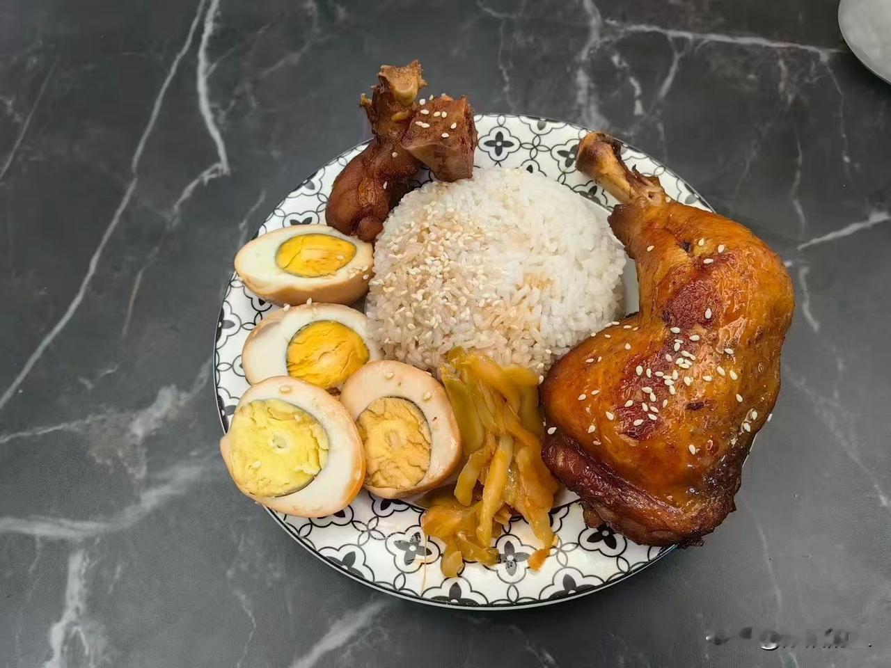 大晚上刷到这碗饭直接给我香迷糊了!刚点的宵夜一上桌,眼睛先看直了——油亮亮的大鸡腿裹满酱,咬开皮脆肉嫩还飙汁,旁边那几块卤味也入味得很。 米饭撒了芝麻喷香,配着溏心蛋的流心和脆爽的腌菜,一口肉一口饭,香得我连扒三大口!这宵夜给的快乐太实在了,吃完打个满足的饱嗝,今晚的幸福是这碗顶配盖饭给的!