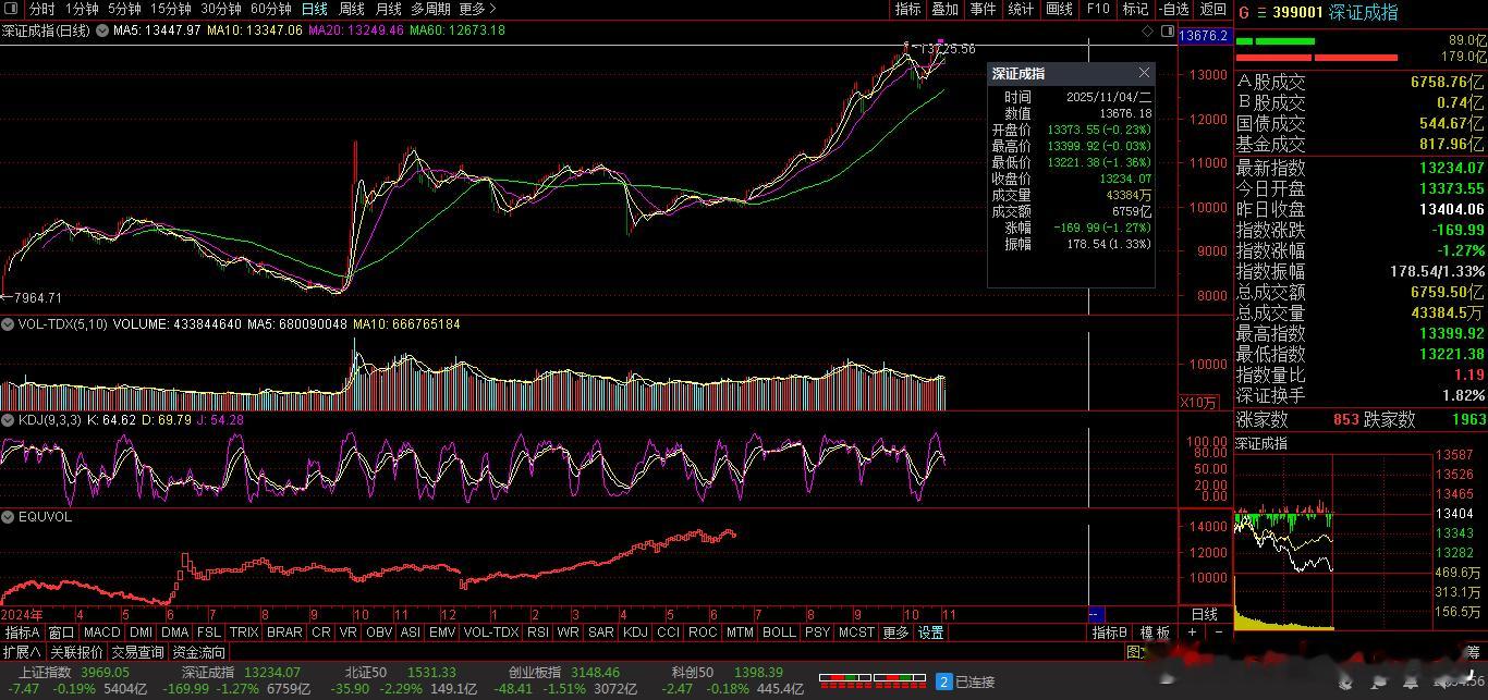 今天目击:沪深北市:早盘:低开三跌,三涨三跌。尾盘:沪指:七涨二跌,次高红盘。深指:六涨二跌,次低绿盘。看点之一:沪指低开:盘中震荡:瞬间上扬。看点之二:创科创50:弱不禁风:冲高回落。看点之三:沪深北市:半日成交:13987亿元。盘面追踪:2677股飘红。
