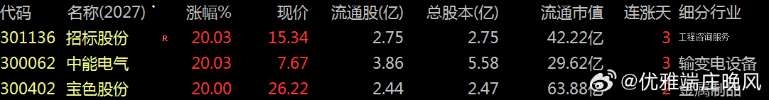 301136 招标股份 300062 中能电气 300402 宝色股份