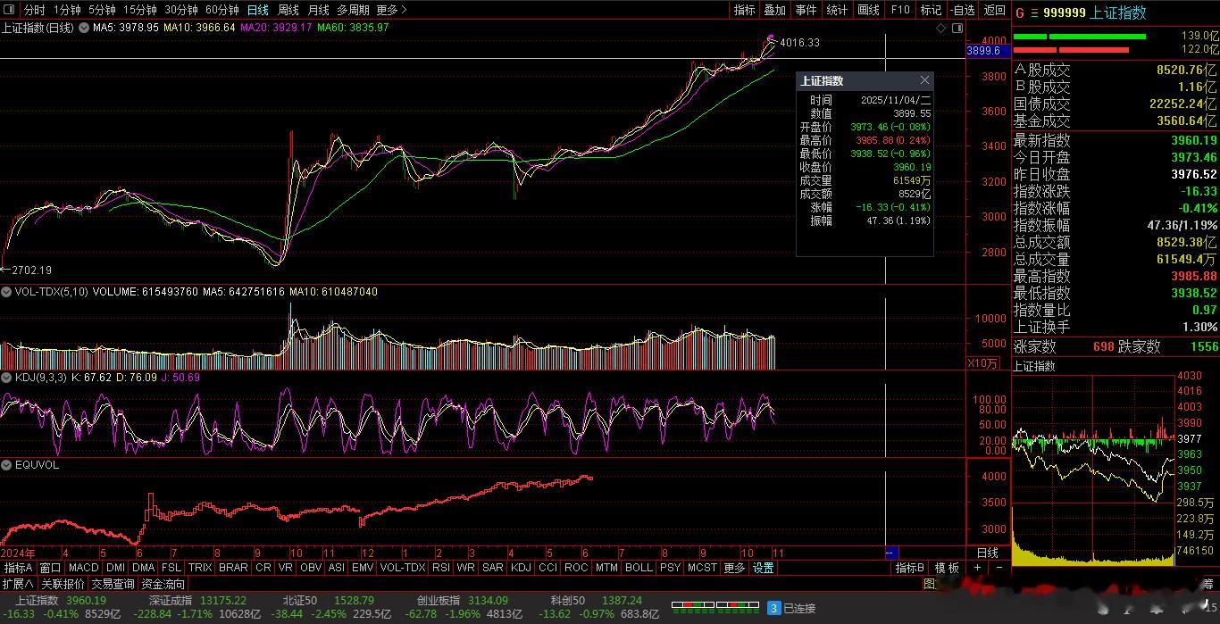 第一、沪指预测11月05日:沪指突破阻力:03985点看涨,前程似锦;跌破支撑位:03938点看跌,日暮途穷。