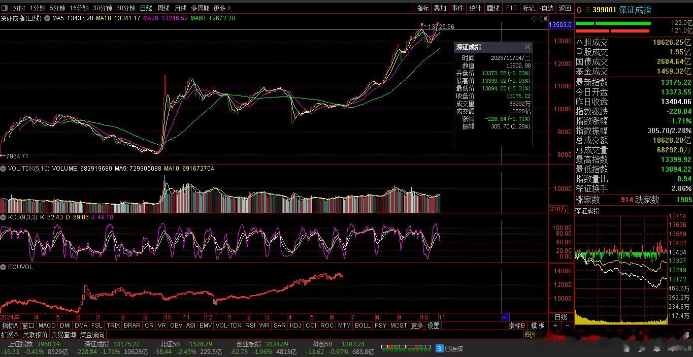 第二、深指预测11月05日:深指突破阻力:13399点看涨,鹏程万里;跌破支撑位:13094点看跌,不堪造就。