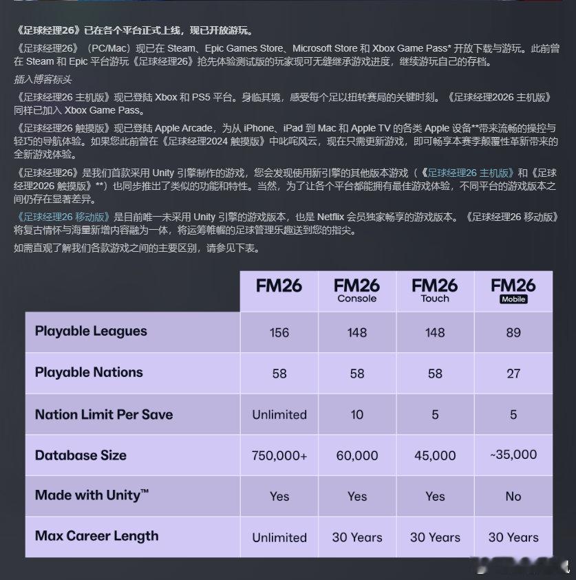 【足球经理26正式版发布!】除了《移动版》,其他版本都是首次使用Unity引擎!