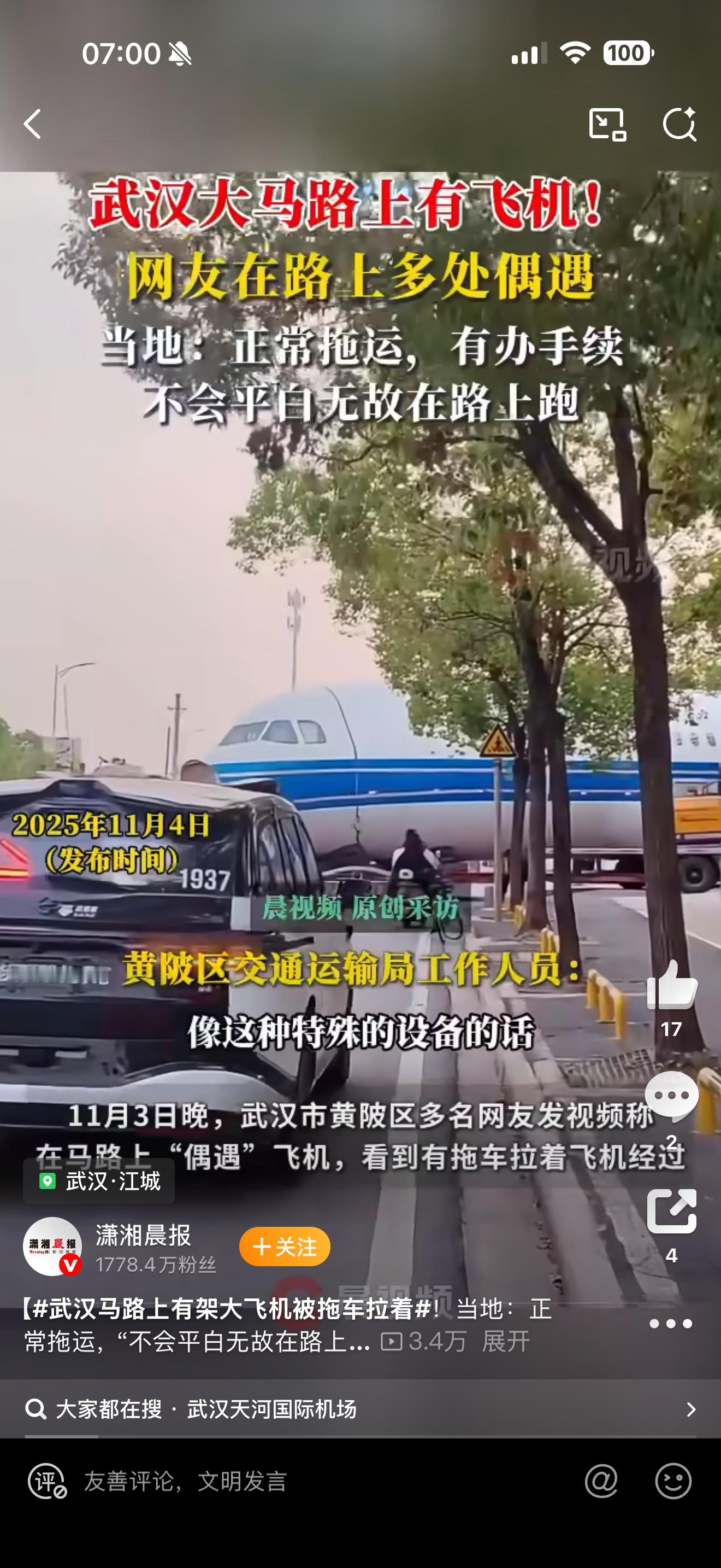 “有网民发布消息称‘天河机场飞机冲出来了’”。