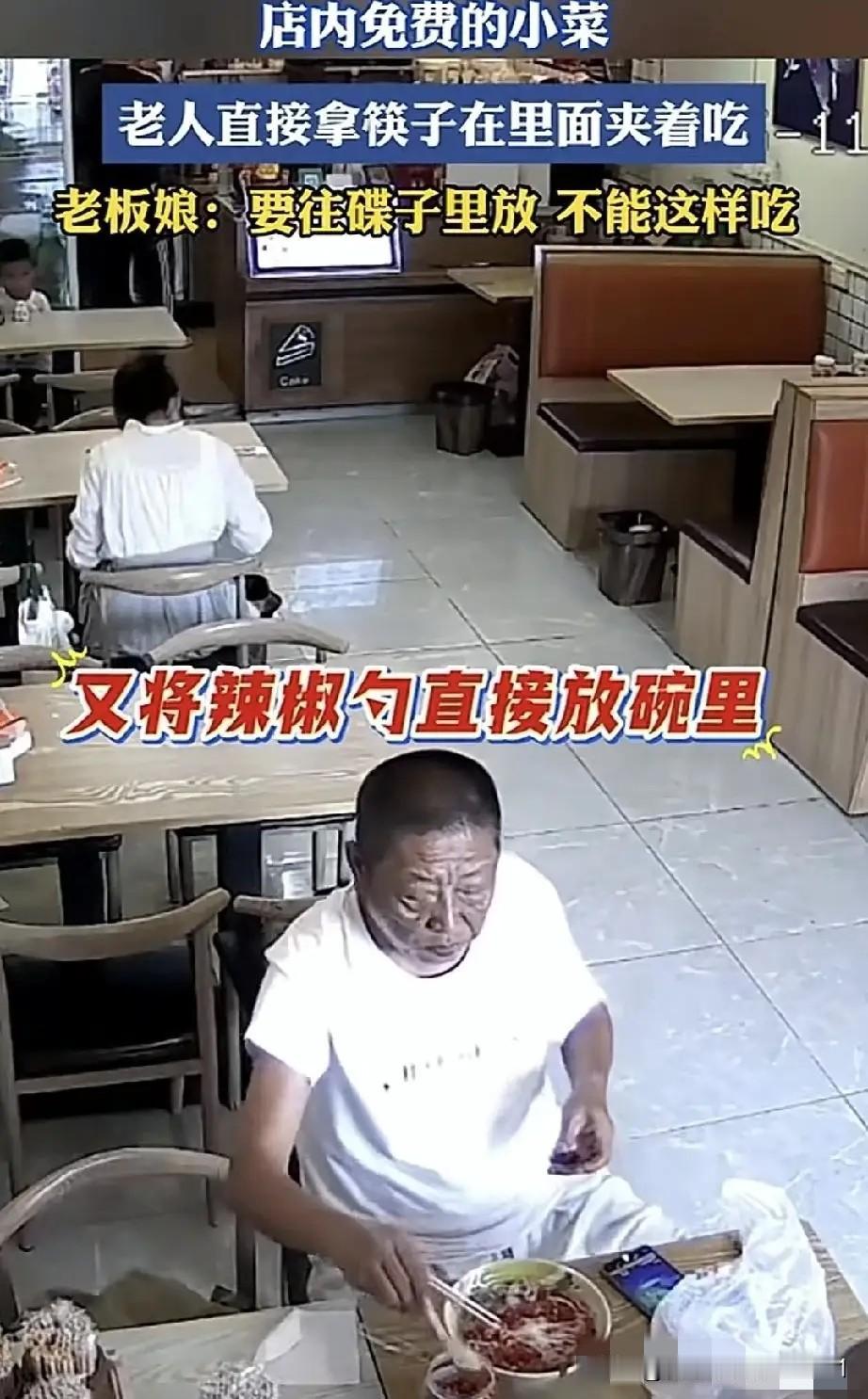 饭店老板娘曝光了一段监控视频。视频中,一名男子坐在餐桌前吃面,竟用自己用过的筷子直接夹取餐桌上的公用免费小菜icon,放入自己的面碗后继续吃面。这一幕被刚从外面回来的老板娘撞见,她当即提醒男子:“这样吃不卫生,要用勺子盛出来放在你自己面碗里,你这么做别人还怎么用?”随后,老板娘拿起那瓶免费小菜,让服务员扔掉并换一瓶新的。 男子见状,生气地不再吃免费小菜,转而去吃辣椒油。他用勺子盛出辣椒油放入自己面碗搅拌后,又将勺子放回罐中,接着继续吃面。 这顾客真是太不见外了,这般吃法让别人怎么下口,看着就令人作呕。老板娘做得没错,当面指出他的问题,就是要让他意识到自己的行为不妥,希望他能有所觉悟并改正。 对待没素质的人何须客气,不然对有素质的人岂不是太不公平?这人太没素质了,就跟在自己家吃饭一样随意!要是我开饭店,我会让他把那罐辣椒买下来,不买就别想走,得让他长点记性。不然他到别的地方也这么干,丢的还是自己的脸。他又不是小孩子,都几十岁的人了,这点道理还不懂吗? 这种没素质的客户,不过是吃碗面而已,何必给他好脸色。店家的损失谁来赔?