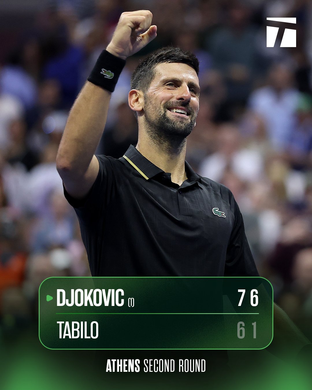 德约科维奇7-6、6-1击败塔比洛,三次交锋首胜对手!另外,塞尔维亚球王表示自己仍未决定是否参加都灵总决赛,将在打完雅典站之后再做决定~
