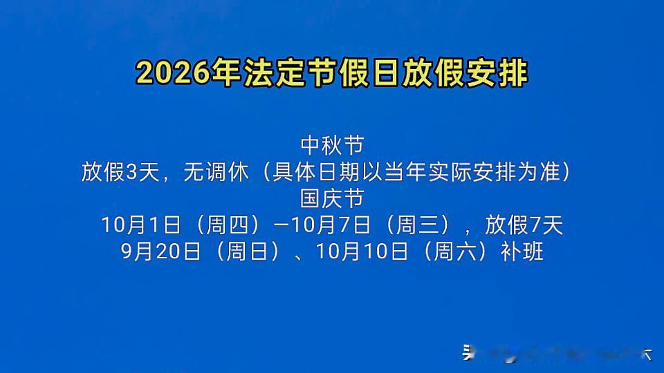 💥2026年节假日大剧透!春节休9天但调休暴击,打工人已开始算年假 家人们!2026年节假日安排正式官宣,最炸的就是春节连休9天(2.15-2.23)!终于能痛痛快快地陪着爸妈过年,不用赶春运的早班车了~ 但是快乐背后藏着个“调休刺客”:节前2.14补班、节后2.28接着补,开工直接连轴转6天呢,想想都得囤好咖啡续命!还有国庆7天假要补2天,劳动节5天假补1天,调休=把快乐拆成碎片再拼回来呢? 不过好消息是鼓励拼带薪年假!春节+年假直接凑出半个月长假,错峰出行再也不用看人山人海啦~ 你们打算怎么拼假期?是回家团圆还是冲旅行?评论区晒晒你的神仙假期计划,让大家抄抄作业呗👇 温馨提示:以上节假日安排仅供参考,最终以官方最新通知为准哦~ 2026节假日安排 春节连休9天 2026调休安排打工人拼假攻略