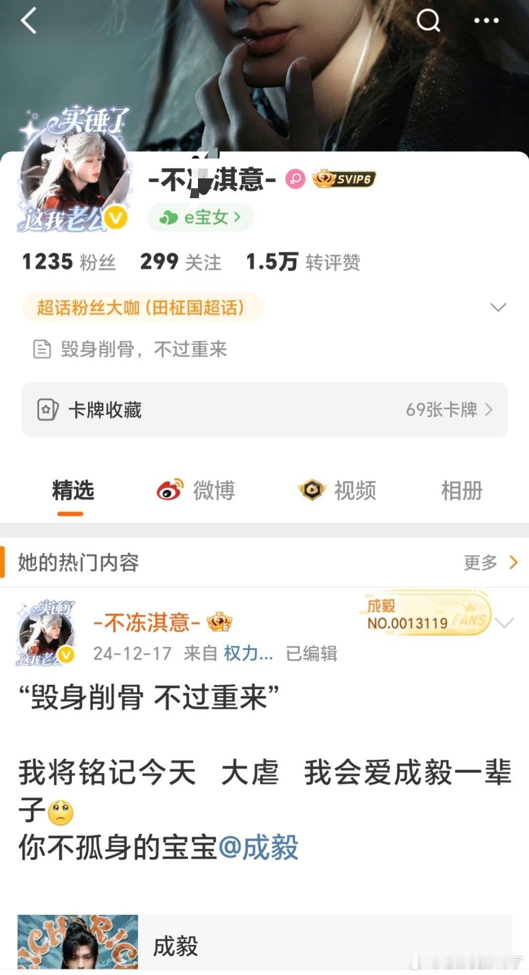 这位成毅粉丝咋还怂了呢?又是改名又是销耗的[流鼻血]咋开除粉籍哦,主页全是ee呢?
