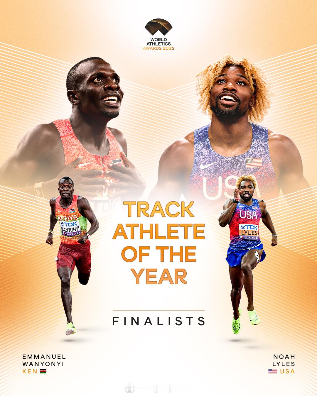 【2025世界田联最佳运动员候选名单】国际体坛动态 11月4日,世界田联公布了2025年最佳运动员候选名单,共有男女各6名运动员从最初的径赛、田赛和场外赛初选名单中脱颖而出。名单如下:
