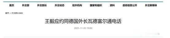 11月3号晚上,王外长“应约”和德国外长瓦德富尔通了电话。在他的访华行程被迫取消