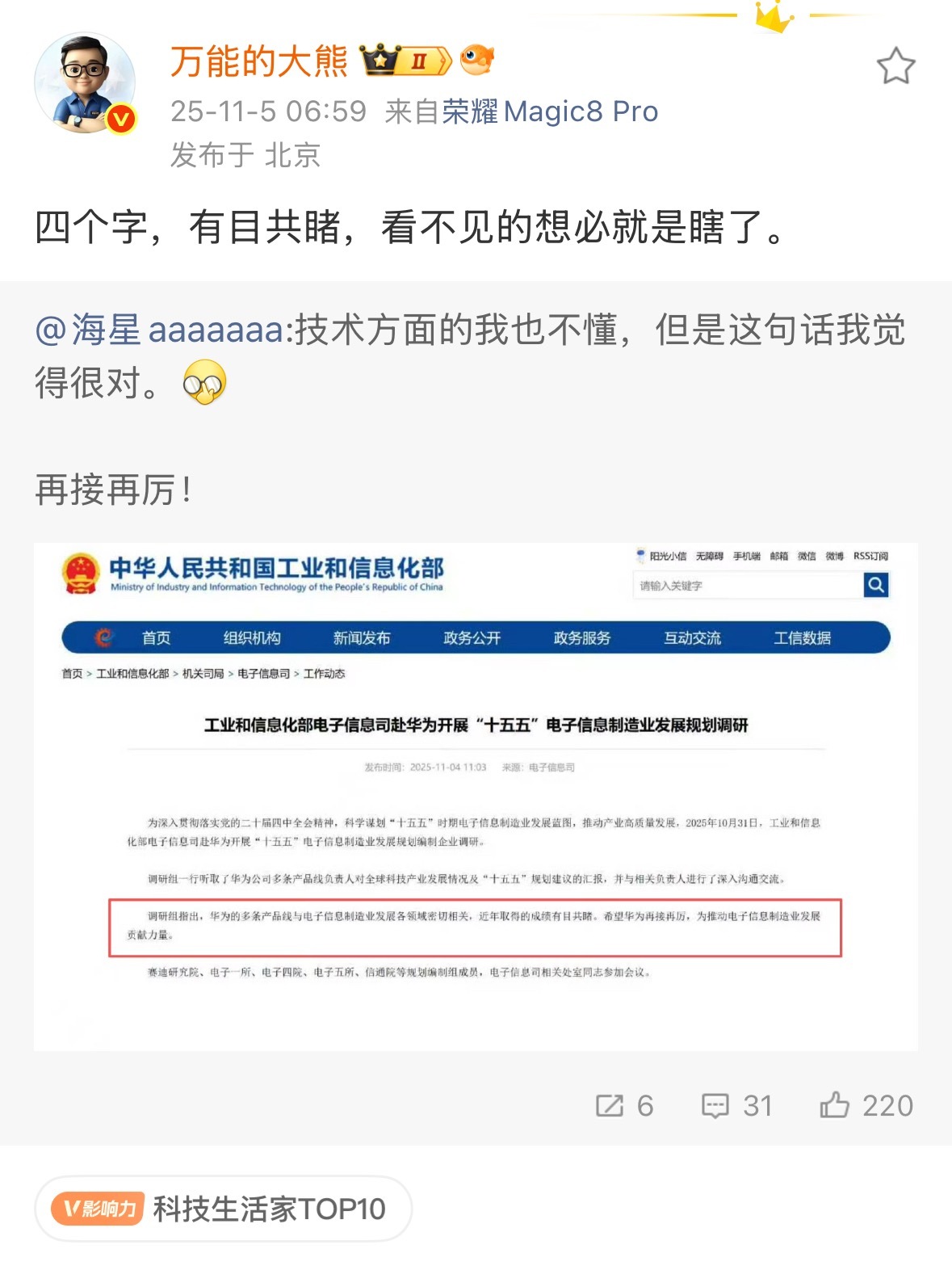 工信部发文夸的是电子信息制造业的相关成绩,你们却让消费电子领域有目共赌,打铁的很卖力,卖面条的说实话没看出来费劲。[吃瓜][吃瓜][吃瓜]