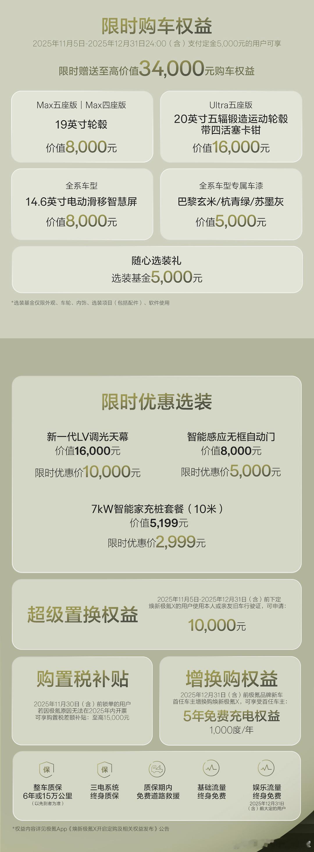 同时针对老车主也有增购优惠:老车主有5年每年1000度的权益。有需求的朋友们可以下手了极氪[超话]焕新极氪x