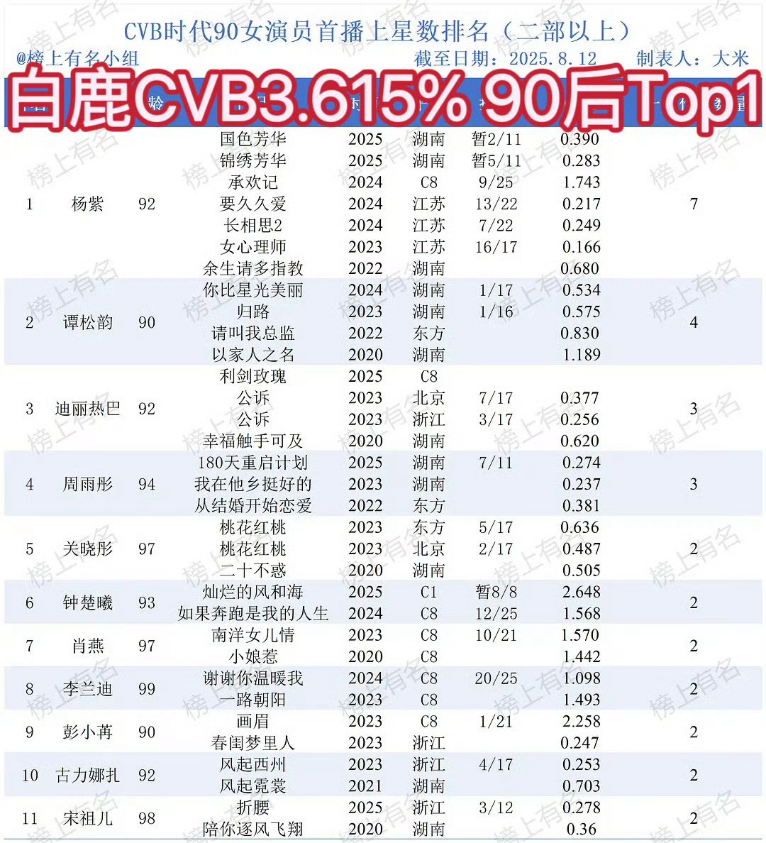 白鹿当然是90花!不仅是90花,还是收视率CVB成绩最高的90花。94年生人从来没改过年龄。草根花真的太不容易了,明明实绩那么强,却被各种打压针对。白鹿白鹿,没有白走的路,但这一路真的充满了荆棘和阻碍。她未来一定会站到别人无法企及的高度!白鹿算90花还是95花