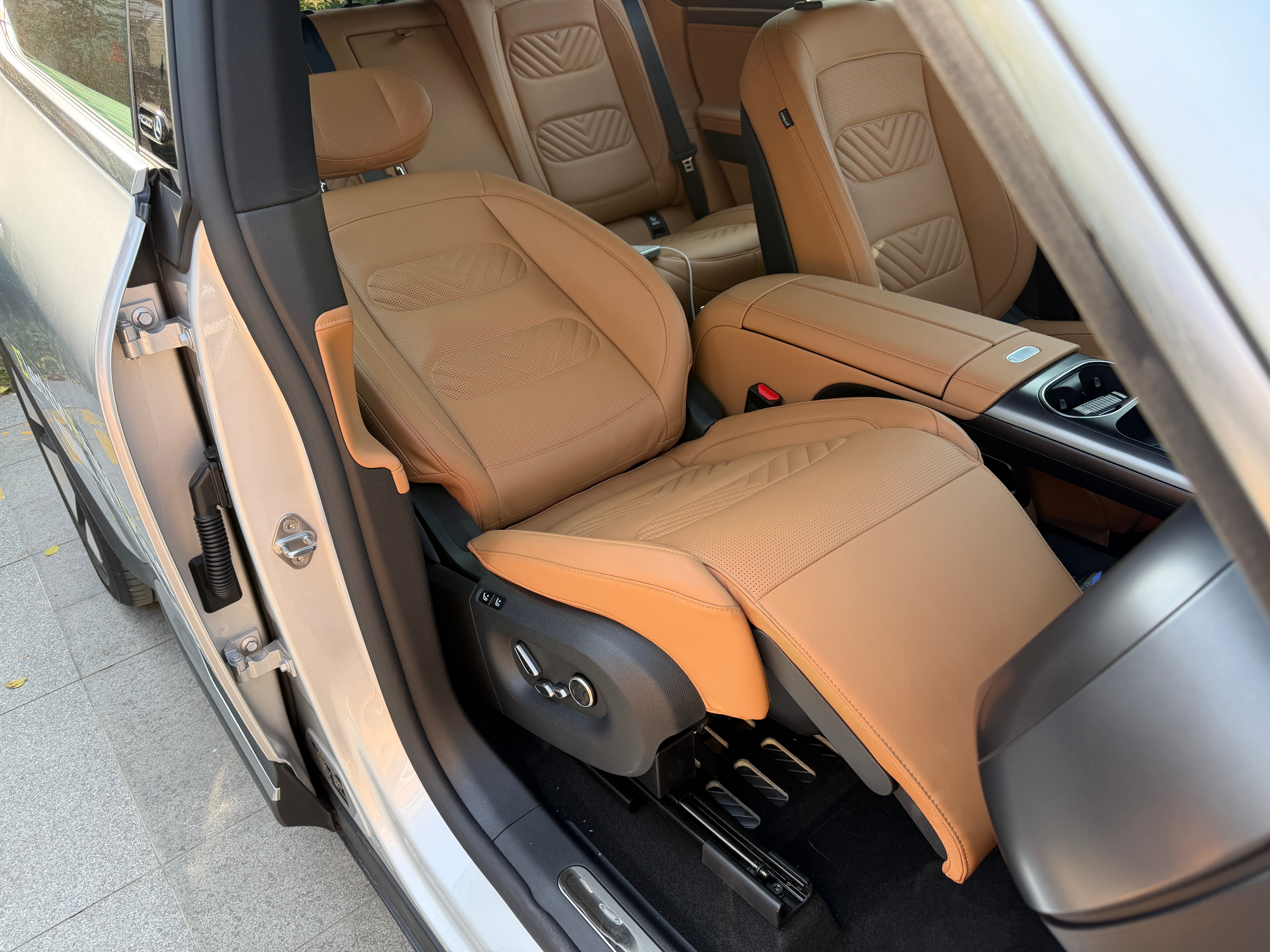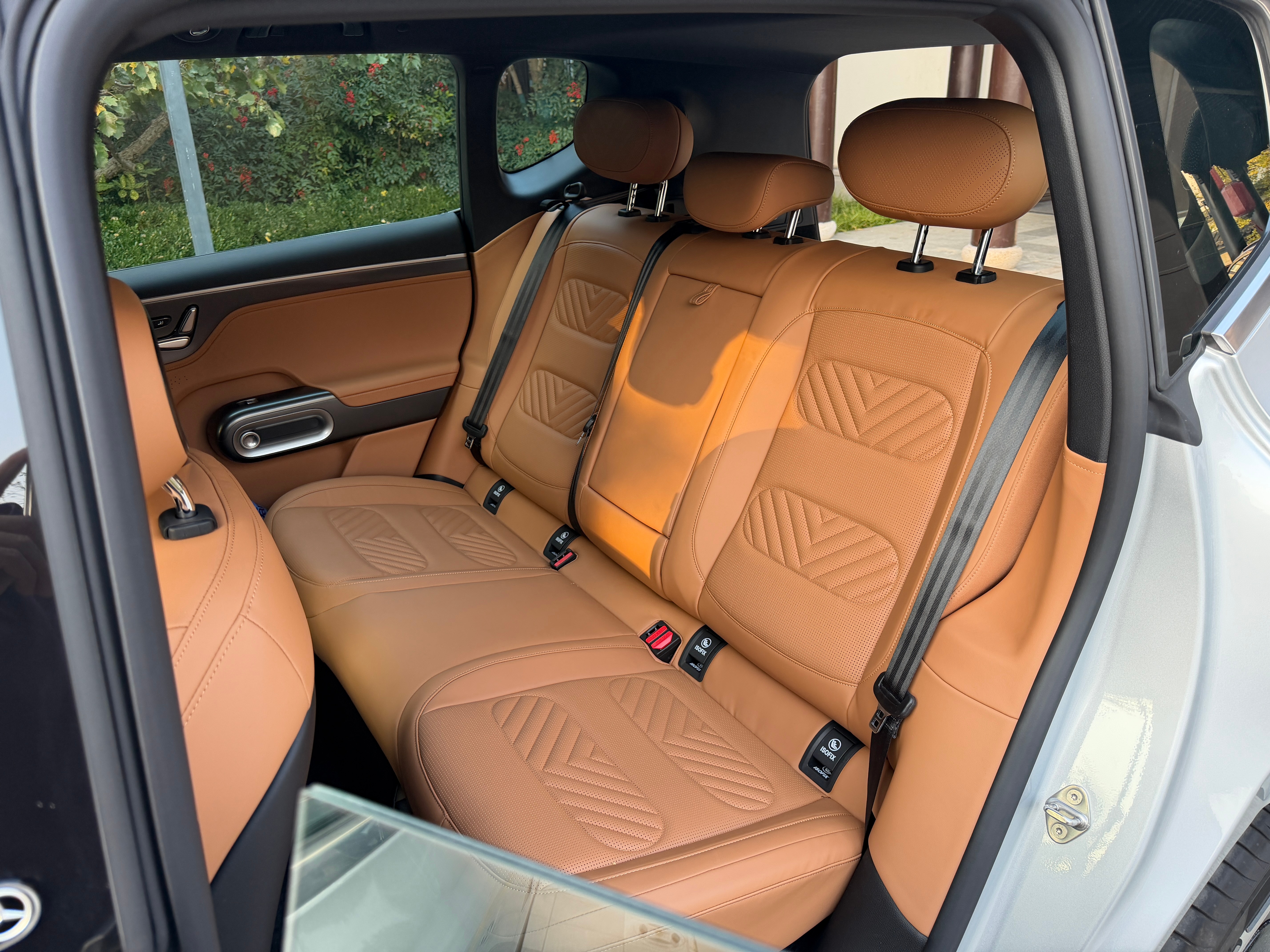 得益于2900mm的轴距和85%的得房率,车内空间宽敞。身高182cm的乘客坐在前排,头部有一拳左右空间,后排头部有四指余量,腿部空间超两拳。后排座椅支持靠背角度调节,且配备加热功能。后备箱常规容积625L,后排座椅放倒后可扩展至1525L,还支持3种床模式,实用性高;
