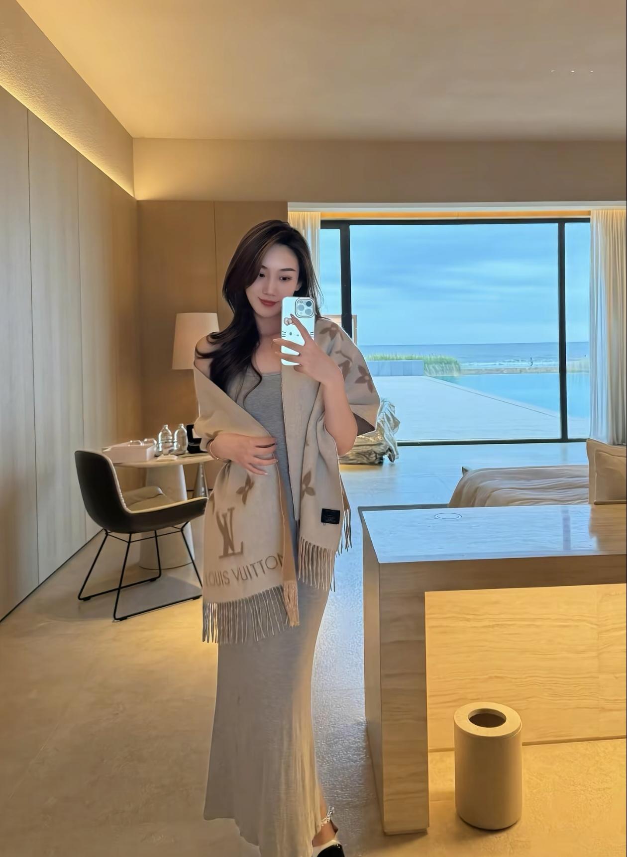 温柔甜美的自拍,白色毛衣搭配黑色裤子,简约又时尚!💕✨