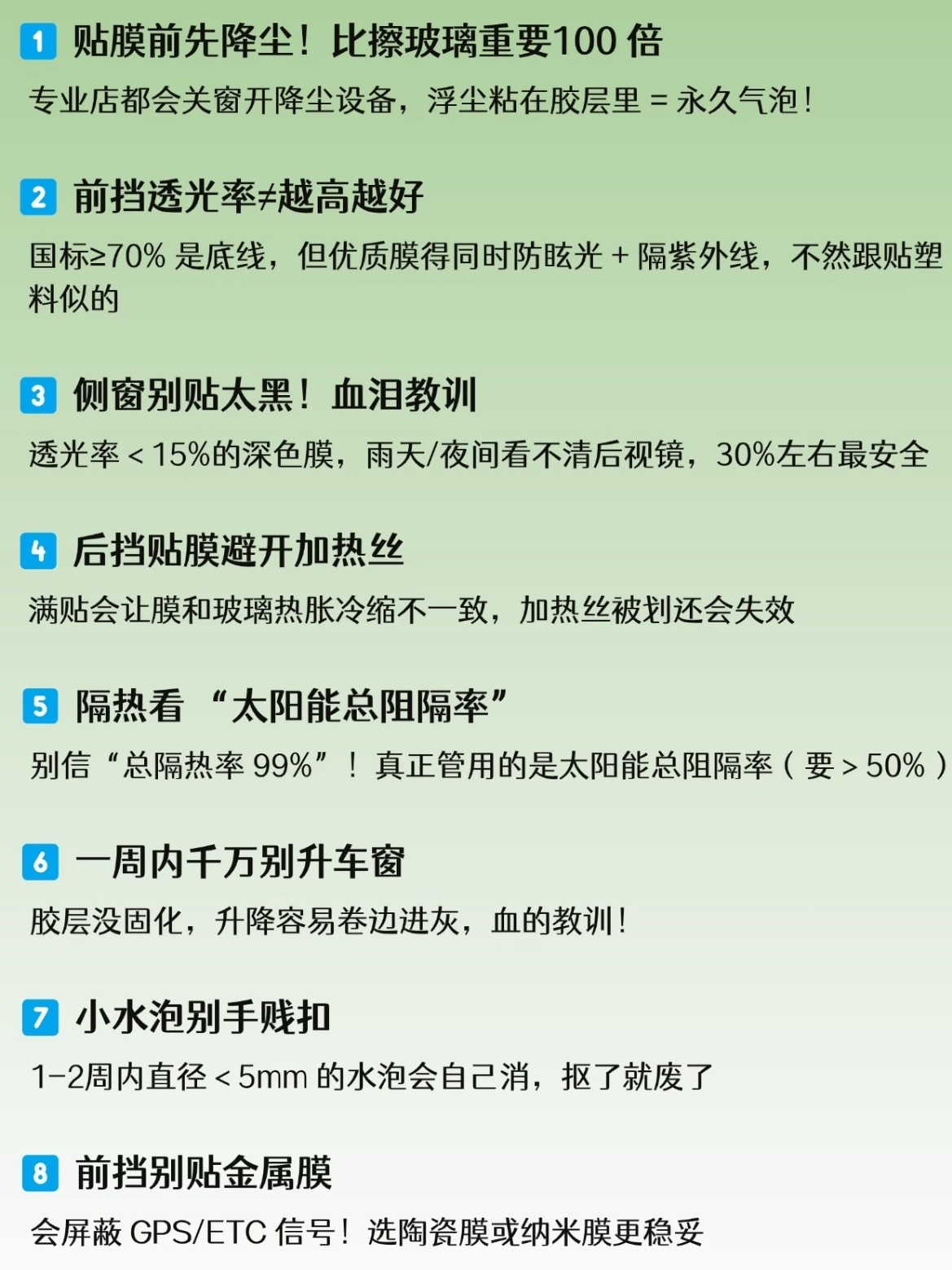 1️⃣降尘比擦玻璃重要100倍:专业门店会关窗降尘,浮尘粘在胶层里就是永久气泡!