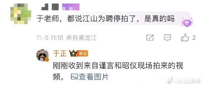 于正回应网传江山为聘停拍于正回应《江山为聘》停拍,一直都没什么动静还以为真的停拍了呢。于正辟谣吴谨言主演的江山为聘停拍