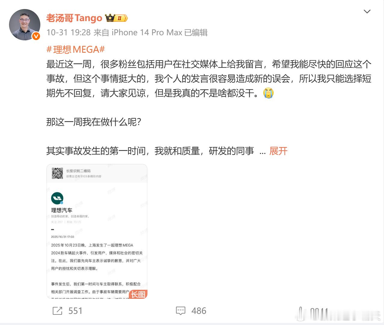 老汤哥是活跃榜的常驻嘉宾,关注度最高的微博是MEGA事件的声明(图3)