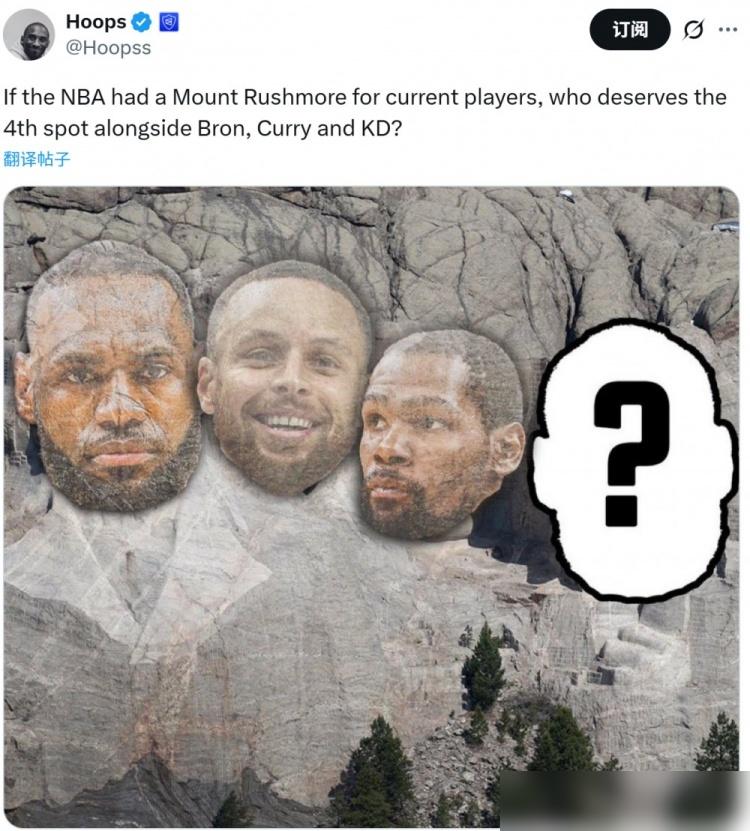 美媒:若评选现役球员总统山,詹、杜、库外,谁是第四人? ​ 以詹姆斯、杜兰特、库