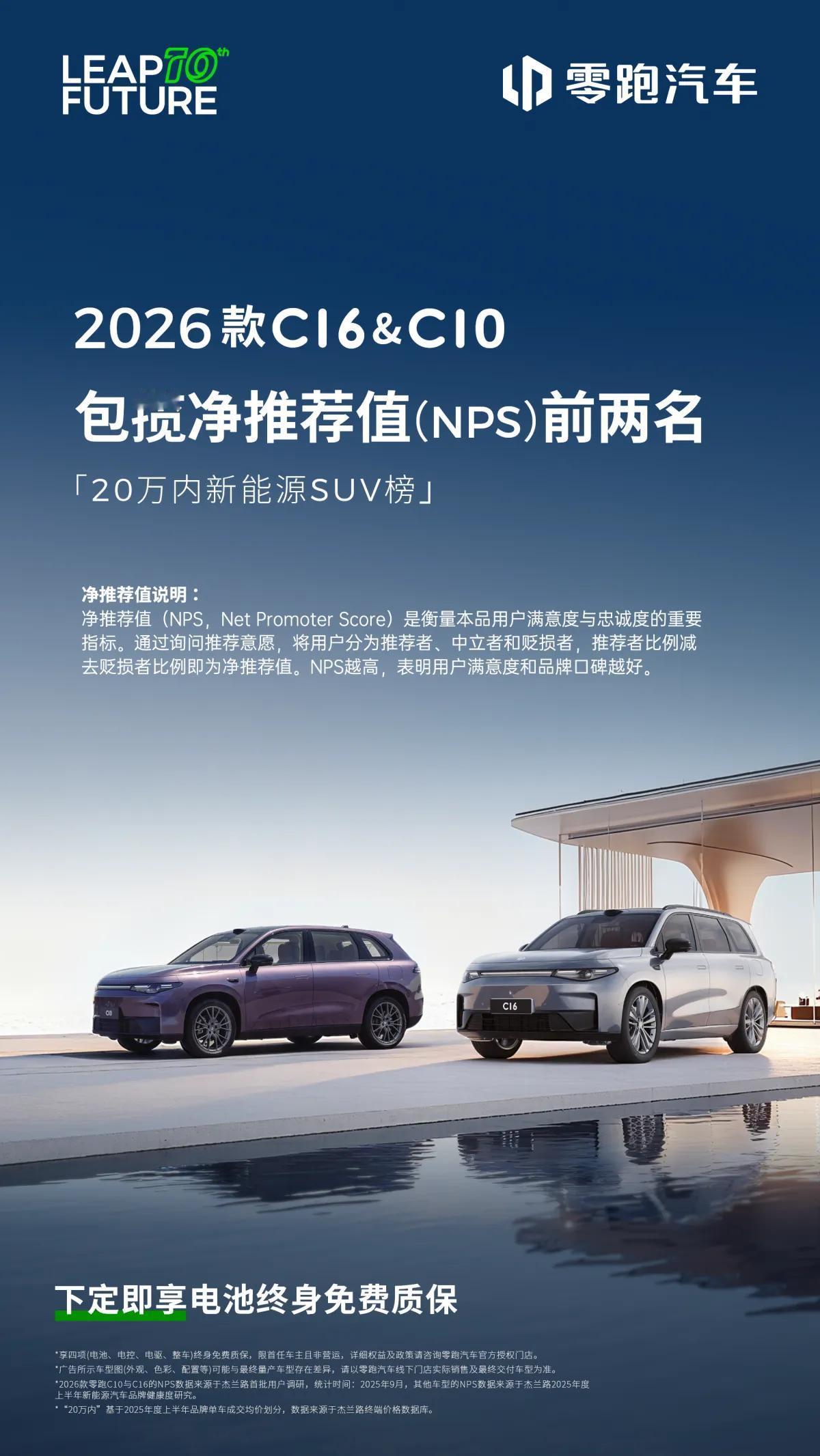 不到20万就入手大六座SUV,零跑C16怎么满足三代人出行的? 现如今,越来越多的消费者考虑六座SUV了,因为在多人出行的时候,不用取舍。要说20万内哪一款六座SUV表现最好,毫无疑问就是零跑C16,尤其是26款C16推出之后,不仅成为20万内新能源SUV榜净推荐值(NPS)榜单第一,10月份还交付了9889台,让C16上市才一年多累计交付量就突破了10万。 要说C16为什么能这么受欢迎,秘诀只有一个,超高品价比。以前只能在30万级的车型上体验到的配置,现在26款C16也给到了,它把冰箱、座椅、大沙发、小桌板全部都配齐了,小朋友坐车的时候会心有所属,不会影响大人开车,而且它有四个儿童座椅接口,小孩子在第二排和第三排都合适,均方便宝妈照顾。 即便是跑长途的时候带着父母,也不怕他们累,26款C16的真皮座椅本身就非常的舒服,它还有通风、加热和按摩的功能,长时间坐车可以通过按摩缓解一下,而且它的座椅可以大角度的调节,加上承托性好,秒变小床,缓解长时间乘坐的压力。换作是同级其它车型的话,也只有30万级的理想L8才会有这么全的体验。 所以,考虑大六座SUV的小伙伴,应该重点关注C16了。