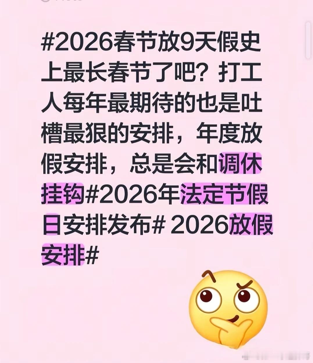 2026年马年春节9天长假的消息刚官宣,调休就成了绕不开的热议焦点。有人骂调休是陷阱,有人说补班换团圆值了,春节调休到底亏不亏话题迅速刷屏。今天用官方信息拆透调休细节,算清这笔假期账。