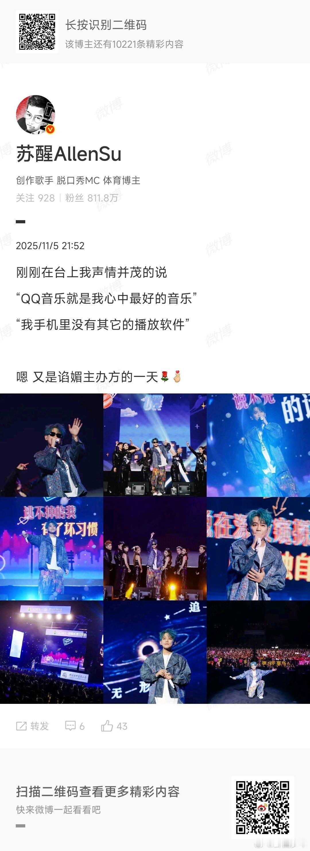 苏醒又是谄媚主办方的一天谁还没被苏醒的"求生欲发言"笑到!台上认真"夸夸"QQ音乐,转头就用一句"又是谄媚主办方的一天"拆自己台,这自带梗的性格果然没让人失望~