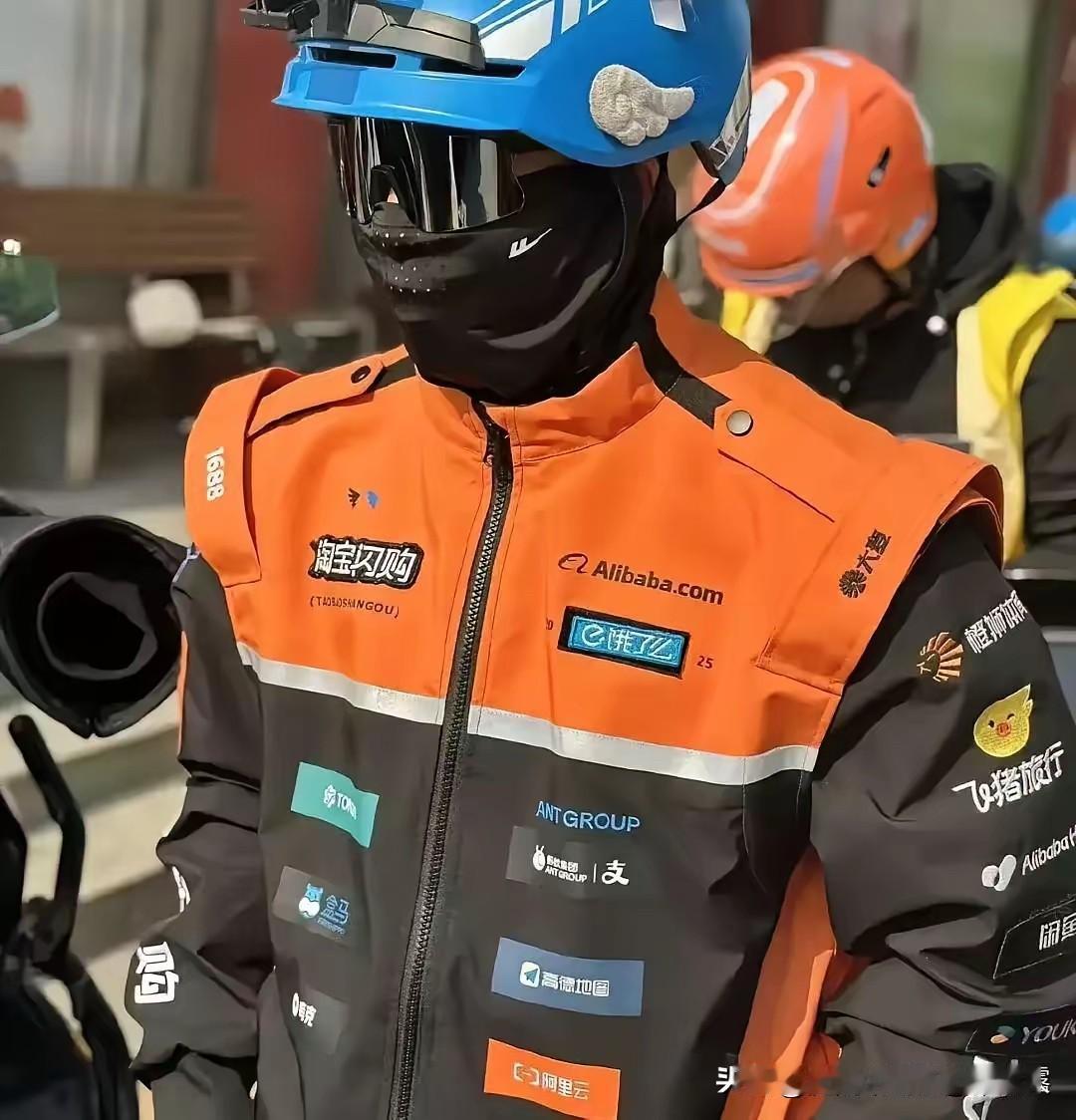 京东沉默了, 美团沉默了, 饿了么不光改名淘宝闪购了, 骑手服都换了, 这不是妥妥机车服吗?还有点帅气了。 以前的红黄蓝外卖大战,这下要变成红黄橙大战了哈哈。 最有意思的是,新衣服上贴满了阿里系各大平台的logo,据说还是魔术贴能撕下来,简直是行走的显眼包!不过颜色比原来的蓝色鲜亮多了,能见度高了,骑手小哥送餐也更安全,这点必须夸! 你们觉得这新外卖服怎么样?像不像机车服?