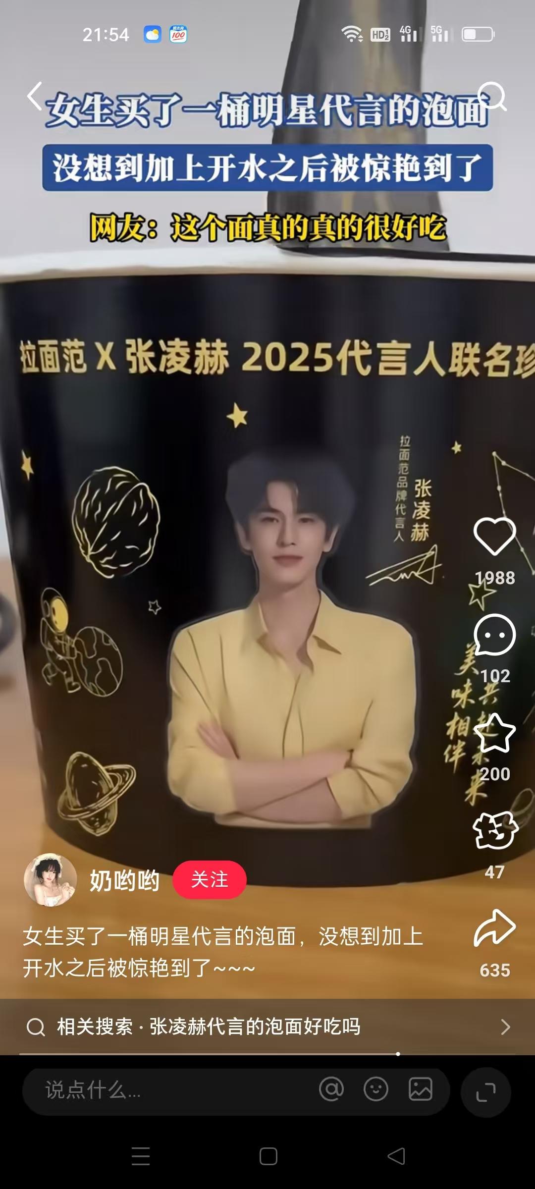 我想过明星会代言产品, 没想过明星的粉丝会买, 但实在没有想到, 产品能设计成这样! 张凌赫与拉面饭联合的 2025年代言人联名珍藏款泡面,加开水后竟被惊艳到! 谁懂我满心期待以为味道很惊艳,碗里用料很丰富 !结果缓缓出现一张男人脸的救赎感。 设计师估计想到的是“也是泡上张凌赫了”是这个设计理念! 这个珍藏款的泡面价格跟普通泡面的价格一样!张凌赫的粉丝收到肯定会开心! 张凌赫写真 张凌赫制服 张凌赫代言 张凌赫周边