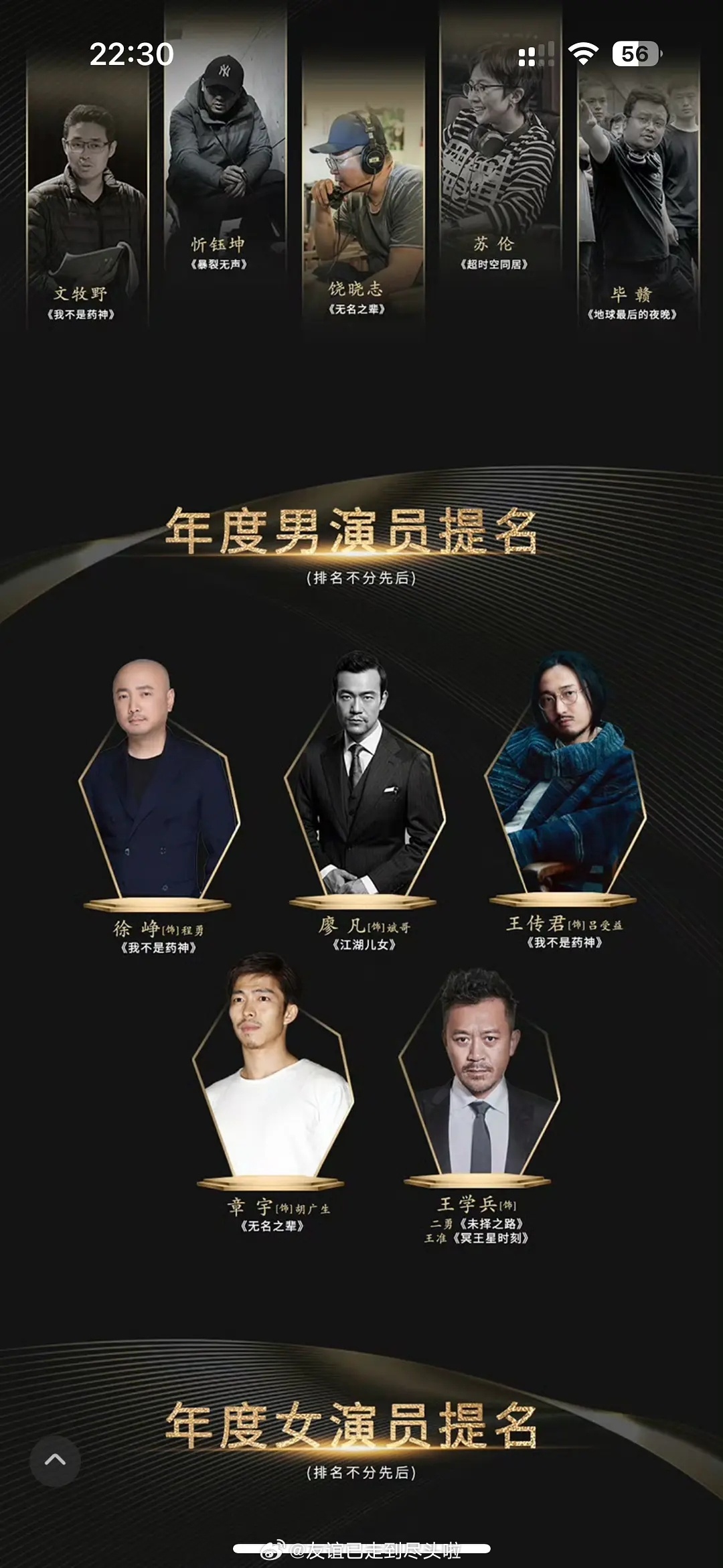 当年徐峥、王传君都凭借《我不是药神》入围导协年度男演员,最后导协把影帝颁给了王传君。