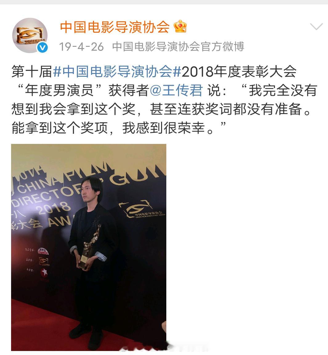 王传君的得奖感言是没想到能拿奖,连获奖词都没准备。