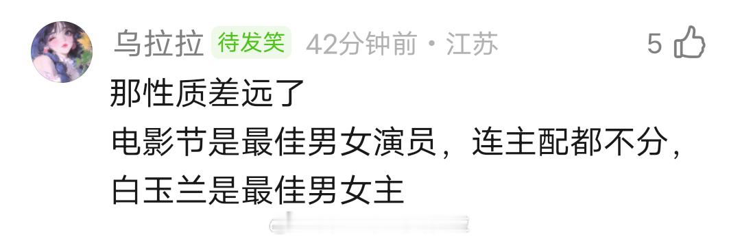 《春树》白百何大女主,王传君拿东京电影节影帝,和之前《追风者》王一博大男主,王阳提名白玉兰视帝,性质是不是差不多?