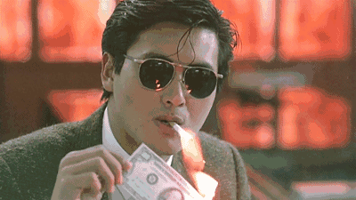 经典的大风衣、黑墨镜、嘴叼火柴、美钞点烟,无一不是父辈们热血年少时竞相模仿的动作。