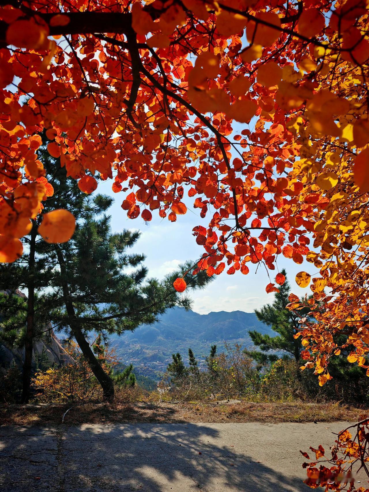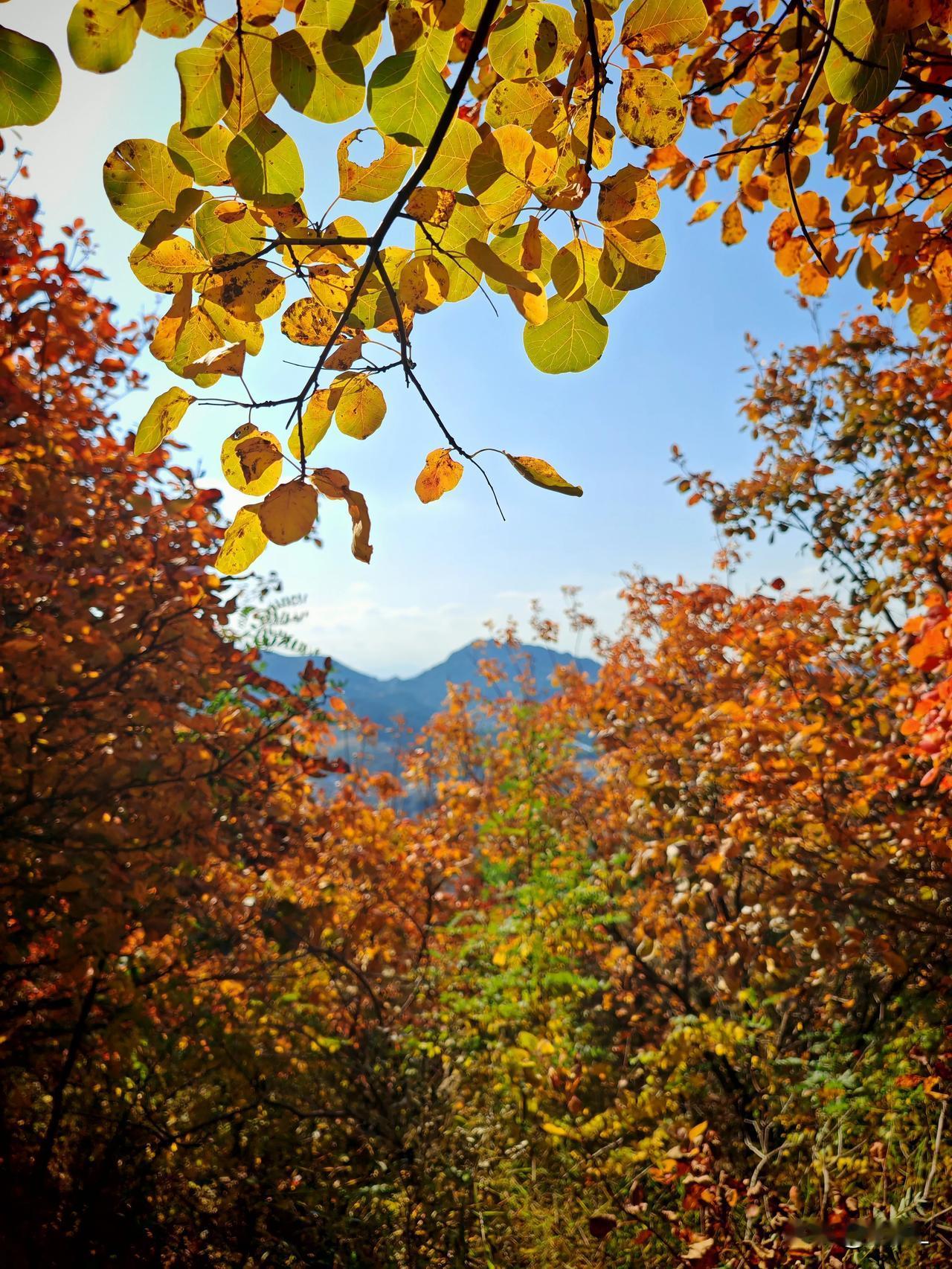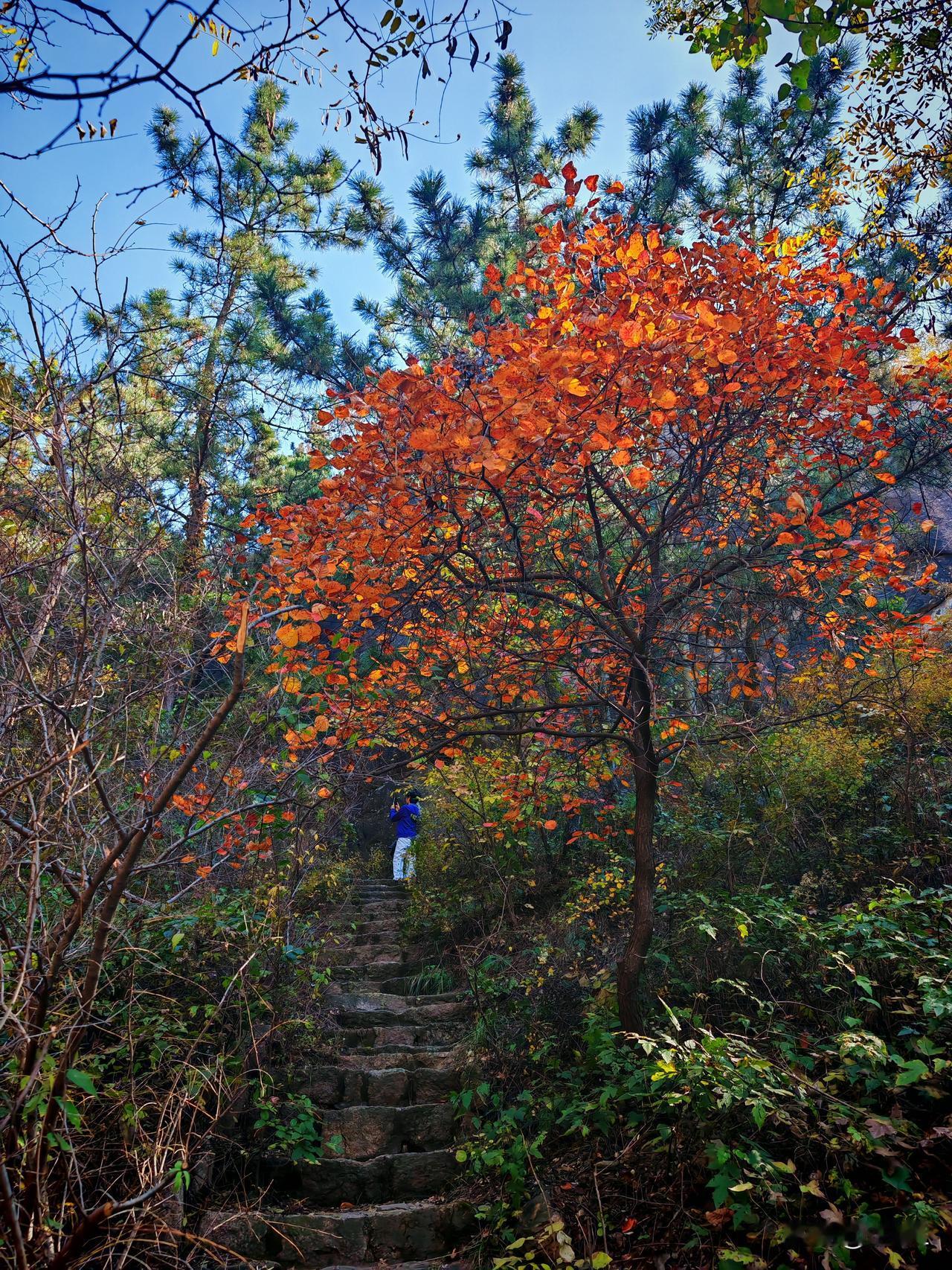 今天去太和山看红叶,去之前我一直以为是枫叶红了,去了才发现,原来是黄栌红了。 从山脚看,感觉山上漫山遍野一片一片的红。真的走上了山,才发现,远处的风景更美。