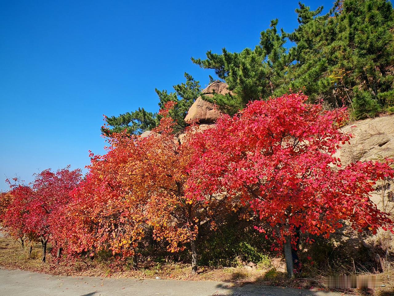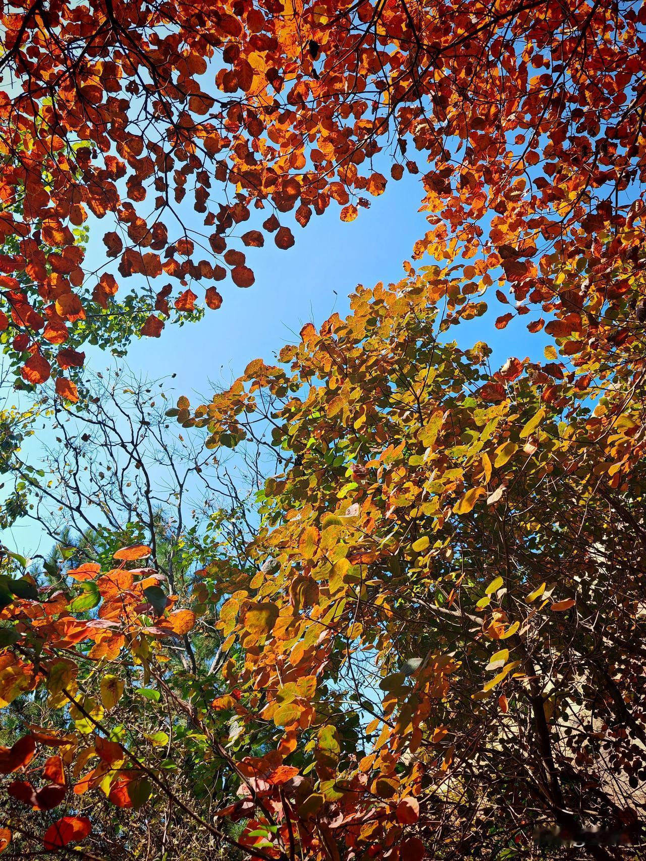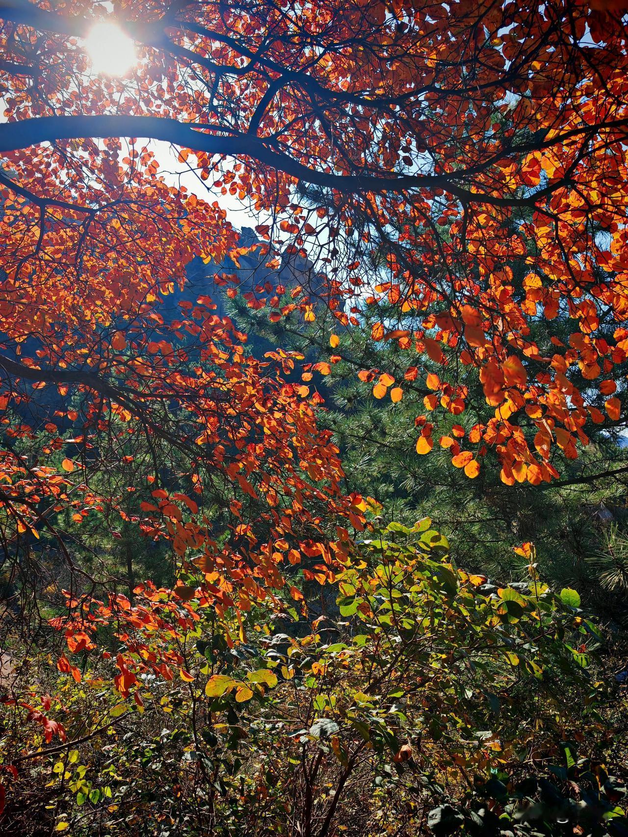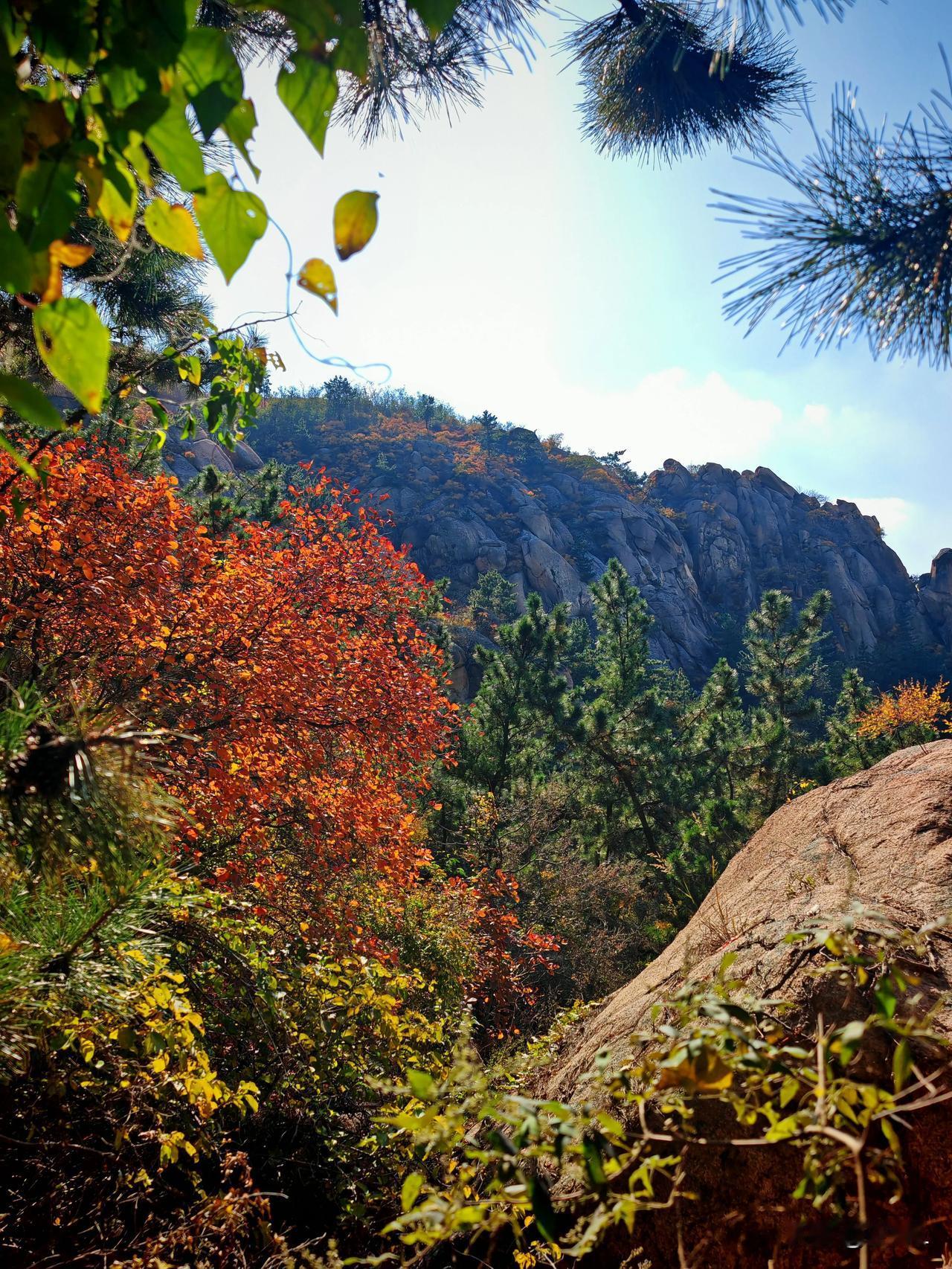 今天去太和山看红叶,去之前我一直以为是枫叶红了,去了才发现,原来是黄栌红了。 从山脚看,感觉山上漫山遍野一片一片的红。真的走上了山,才发现,远处的风景更美。