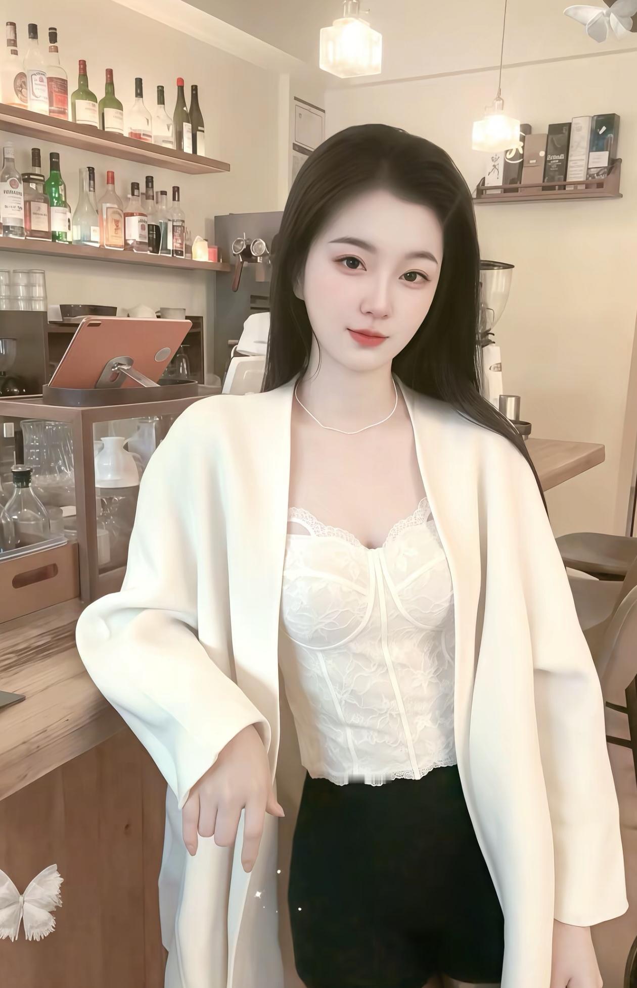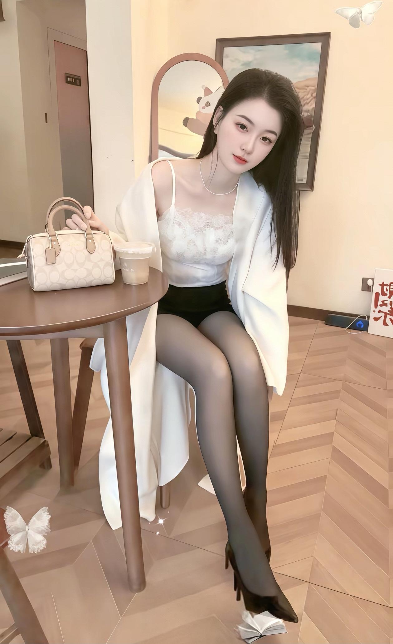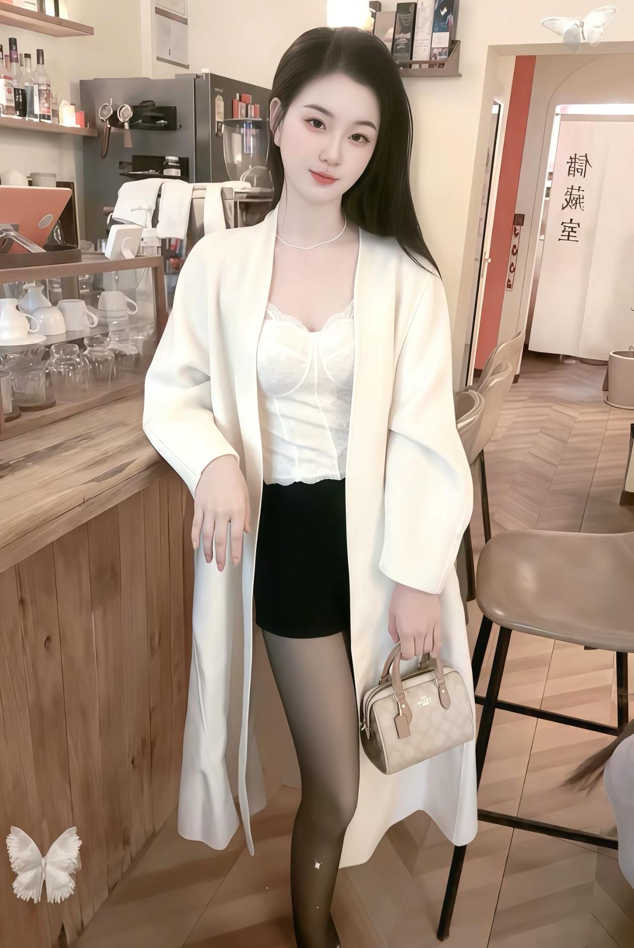 优雅下午茶时光,白色外套搭配黑色丝袜,尽显温柔气质。