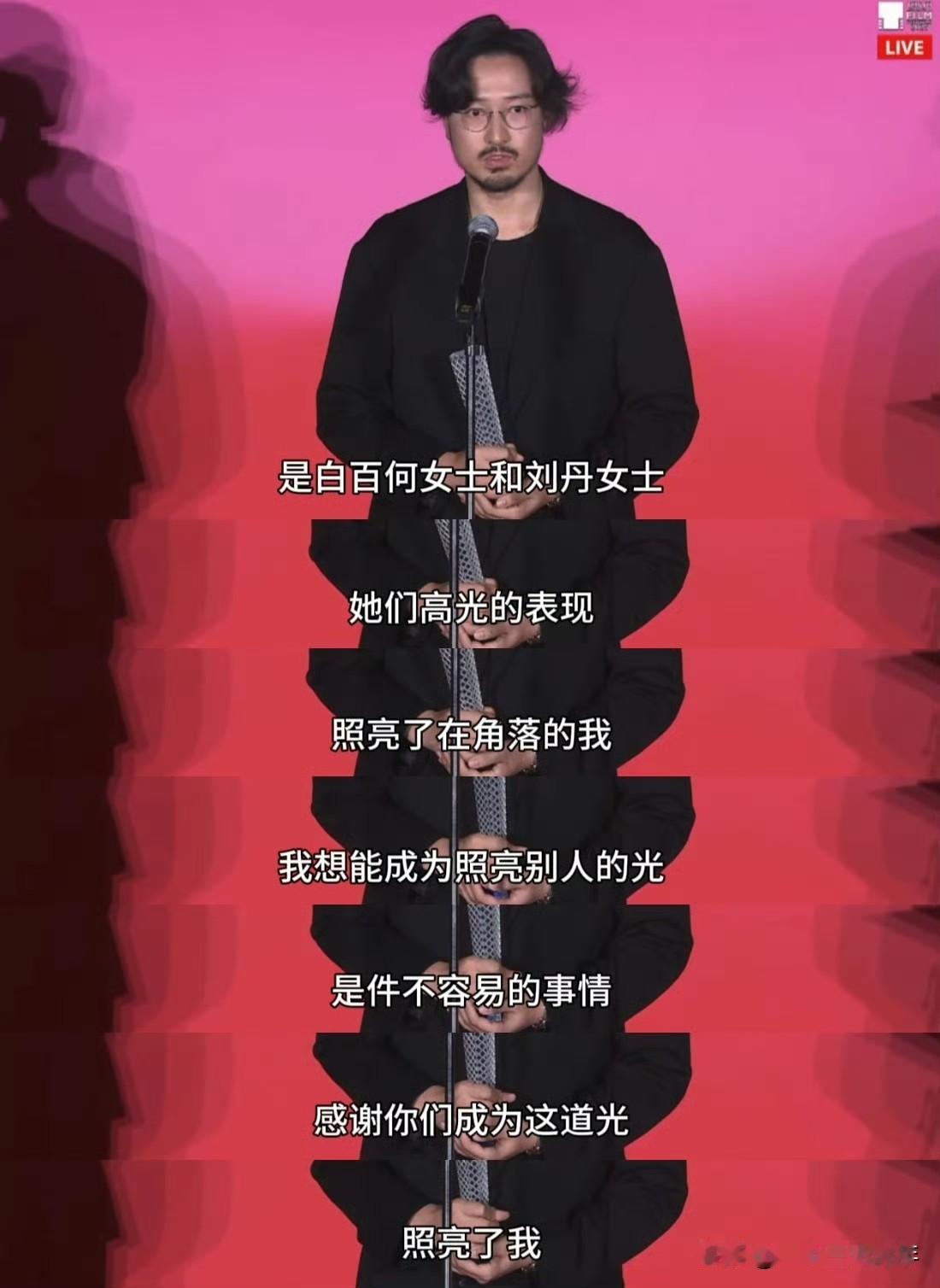 被王传君在东京电影节获奖感言戳到了:他说自己“配得感很低”,喜欢躲在角落,不擅长成为焦点。可就是这样一个人,在光影交错的舞台上,被白百何和刘丹的“光”照亮,也用自己的表演悄悄照亮了观众。 最打动人的是他说女儿一句“爸爸你好酷”,让他意识到——原来自己也能成为别人的光,有时候,我们不必一直耀眼,只要真诚、努力,哪怕在角落里,也会被看见。 评委桂纶镁谈王传君得奖原因:“就像我们主席(卡洛·沙特里安)说的,我们的选择并不多。 但是我想对我而言王传君的表演是用非常安静内敛却表达了细微的情感,让我非常信服,所以我们都一起做了这个决定。” 王传君为《春树》中的角色,他减重15斤,每天凌晨4点跟着当地木匠学榫卯工艺,在贵州山区拍摄时与村民同吃同住三个月,甚至因雪中拍戏体力透支晕倒,醒来第一句还在问"刚才那条能用吗"。 影片中他的无台词表演被评委盛赞"让沉默震耳欲聋",有限的戏份里,仅凭肢体语言与眼神就勾勒出角色的执拗与脆弱,这种"以少胜多"的表演功力,正是对演技最好的证明。 更难得的是他的清醒与纯粹,当年一句"我不喜欢"不愿向流量妥协,即便遭遇11个月没戏拍的低谷,也始终坚守对好角色的追求。 从《我不是药神》里让人泪目的吕受益,到《孤注一掷》里让人后背发凉的诈骗头子,每次出现都像换个人,这剧抛式的演技真的让人心服口服。 2018年《我不是药神》中,他减重20斤,以濒死白血病人的细腻演绎,斩获百花奖最佳男配角,完成从偶像派到实力派的跨越。 此后在《孤注一掷》《南京照相馆》中,他精准诠释诈骗头目的狠辣与汉奸的挣扎,用层次分明的表演撕碎标签,终以《春树》登顶东京电影节,印证其“千面戏骨”的深厚功力。 东京电影节是国际A类电影节之一,在电影界也有着较高的地位,王传君的这次获奖,也为中国电影赢得国际赞誉。 《春树》全程在成都取景拍摄,讲述了迷茫归乡者与闯入的外地青年,在重游与发现中走进成都肌理的治愈故事。 作为国际A类电影节荣誉,此次获奖标志着王传君的演技获得国际主流认可。 王传君能够从众多国际竞争者中脱颖而出,不仅是个人的荣耀,也是中国电影在国际舞台上日益提升的体现。这一成就背后,是他对表演艺术的执着追求和不懈努力。 在流量至上的时代,王传君始终保持着对表演的敬畏之心。 他拒绝重复性角色,勇于挑战自我,这种专业态度值得尊敬。 他的成功向年轻演员传递了一个明确信息:真正的认可是靠实力赢得的,而非一时的热度。