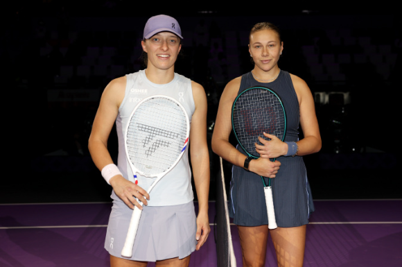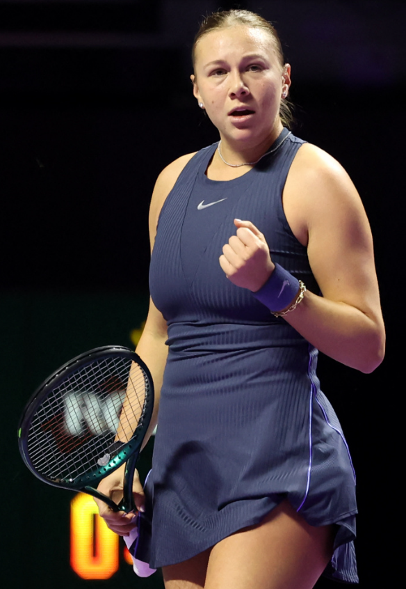 利雅得WTA年终总决赛,单打小威廉姆斯组最后一轮小组赛,4号种子阿尼西莫娃以6-7(3) 6-4 6-2逆转前赛会冠军、2号种子斯瓦泰克,继美网之后再胜对手,以小组赛2胜1负的战绩出线,首次亮相总决赛便成功晋级四强!