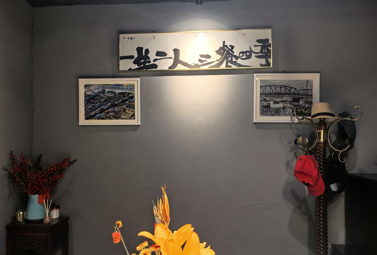 初见苏河佑君爱,善钟悠远梵音猜。 普通面馆耕心海,安定酒吧修妙才。 一醉佳人不曾改,三餐远客莫迟来。 谁能扶你凌云志,恭喜龚奚路自开。 注:20251104,君爱团队的两位美女,盛情邀请,重续支教情谊。漫步苏州河畔,走进本帮面馆,充盈个性魅力、家的味道和上海精神。夫妻二人姓氏契缘,故店名为“龚奚”,恭喜恭喜,充满喜气氛围。店里处处诗情画意,墙角面面优雅景致。男主人还写了一幅对联,“人生苦短怎能面面俱到,薄酒二两何必斤斤计较”,白天面馆,晚上则为酒吧,匠心独具的经营之外,随处可见随风飘曳的惬意和洞悉真谛的豁达。闲聊起来,从北京到安吉,再到上海,之所以成为魔都苏州河畔一道靓丽的风景线,得益于不屈的斗志和顿悟的智慧,真乃大隐隐于静安,大爱爱于肠胃。有空来“龚奚”,品尝上海本帮面菜,感受上海精致的生活与温馨的味道。5-6日,北京海淀补记。#秦安战略#