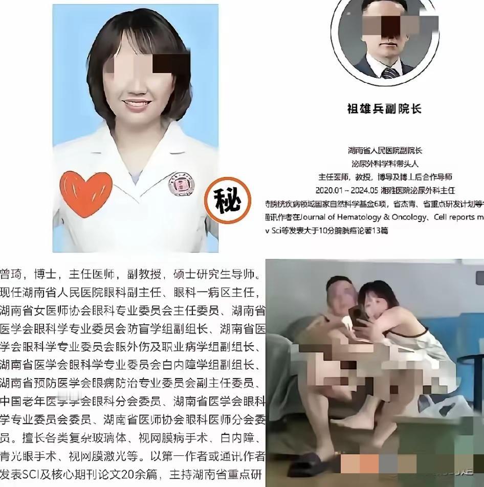 湖南省人民医院肖亚洲院长怕是要被自家两位“精英”气到血压飙升!17分钟的爆料视频一曝光,直接 把医院推上热搜风口,里子面子碎了一地 泌尿科祖副院长和眼科曾主任,本该是救死扶伤的行业标杆,却因不正当男女关系的实锤,让隐藏多年的私事公之于众,所谓的“专家光环”瞬间碎成渣。 事件发酵这么多天,医院和当事人全程沉默,既不否认也不回应,这态度比爆料本身更耐人寻味——要是没影的事,哪会任由舆论发酵? 说到底,医术高超从来不是突破道德底线的通行证,穿上白大褂是治病救人的医者,脱下白大褂也该是守得住底线的普通人 观众尊重的从来不是“专家”头衔,而是头衔背后的医德与人品,一旦人品塌方,再精湛的医术也难以让人信服。 真正的行业精英,不该只拼专业能力,更该守好做人的底线。医术是安身立命的本事,而人品才是行走世间的底气。 你觉得对于手握“健康权”的医者,医德和医术哪个更该被放在首位?来评论区说说你的看法!
