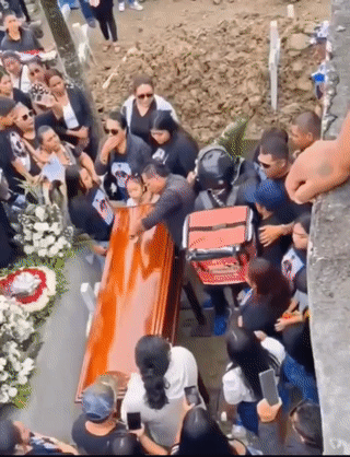 国外一个葬礼现场。 逝者的亲人正围在棺材旁和逝者做最后的告别。 一个跑腿小哥突然