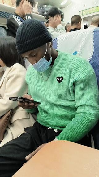 火车上看到一个黑哥正在用手机微信和别人聊天? 由于车上的人非常多,他也不好意思用语音聊天,所以只能靠打字聊天? 也不知道和他聊天的人是男的?还是女的?社会奇葩事真多