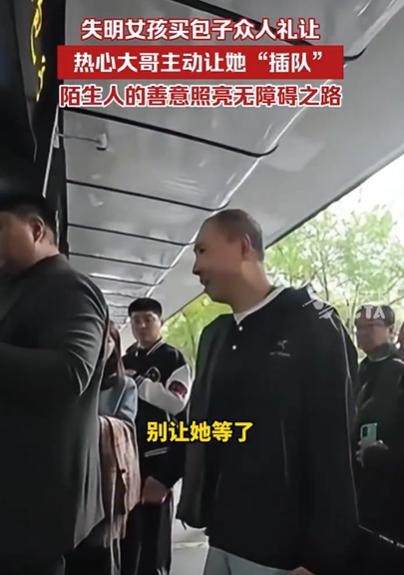 泪目!北京一失明女孩独自去买包子,没想到,到了之后,发现排了很长的队伍,她刚准备离开时,却被一位大哥拦住,主动让她“插队”!女孩很善良的回应:不用不用,这插队不太好!随后的一幕,却让网友们集体破防! 清晨的北京牛街,被早餐铺的烟火气唤醒。蒸笼里冒出的热气裹着面香,在清晨的街道上散开,包子铺门前早已排起了蜿蜒的长队,每个人都在晨光里等候一份热腾腾的早餐。 在这片喧闹中,一个踉跄的身影格外引人注目——23岁的徐佳媛攥着导盲杖,一点点摸索着靠近队伍,她那双失去视力的眼睛里没有光感,只能凭借听觉和触觉感知周围的世界。 这次独自出门,徐佳媛是特意来牛街品尝特色小吃的。 在此之前,她过马路时就得到过一位阿姨的搀扶,那份短暂的帮助让她更有勇气继续探索这条陌生的街道。 当她听说附近这家包子铺的口味备受好评,便萌生了排队购买的想法。 她小心翼翼地向身旁路人询问队尾的位置,在得到指引后,慢慢朝着队伍的方向挪动,每一步都走得格外谨慎,走了好一会儿才逐渐靠近人群。 就在徐佳媛犹豫着要不要加入队伍时,队伍中一位大哥率先注意到了她的窘迫。 看着女孩握着导盲杖迟疑不前的样子,他主动示意让她站到自己身前。 那位主动开口礼让的大哥,或许只是出于本能的善意,却像一颗投入湖面的石子,激起了满池温暖的涟漪。 这份突如其来的善意让徐佳媛有些手足无措,她连忙摆手谢绝,坚持要排队等候,不愿因为自己的特殊情况打乱大家的秩序。 徐佳媛的婉拒并没有让这份善意中断。 队伍里一位大叔认出了她——此前在路口,他就见过女孩被阿姨搀扶着过马路。 大叔主动走上前,耐心询问她想吃的包子馅料,一边介绍着不同口味,一边劝说她不用排队,并向周围人说明她的情况。 与此同时,两位大妈也从队伍前排挪了过来,热情地拉着她往窗口方向走,前排的小伙子也回头表示可以先给她打包。 原本整齐的队伍因为这份默契的礼让,自然地让出了一条通道。 更让人暖心的是细节处的关怀。一位阿姨关切地询问了徐佳媛的视力状况,得知她完全没有光感后,提议让她在店铺门口等候,避免跟着队伍来回移动,并承诺轮到她时会及时告知。 大叔采纳了这个建议,细心地牵着她的手避开台阶,将她安置在安全的位置,之后又在排队过程中不时回头确认她的状况。 等到终于轮到徐佳媛时,大叔还主动帮她接过打包好的包子,细心地装进袋子里递到她手中。 无法再推辞众人的好意,徐佳媛买完包子后,缓缓转过身面向长长的队伍,深深鞠了一躬。 这个简单的动作里,满含着她的感激之情。 队伍里的人们纷纷笑着回应,原本因为排队有些沉闷的氛围,因为这场善意的互动变得格外热闹。 离开时,大家又主动让出一条宽敞的通道,那位之前询问她视力的阿姨还特意跟在她身边,指引她绕过附近的路障,直到确认她走上平坦的路面,才放心地回到队伍中。 这场发生在早餐高峰时段的礼让事件,很快引发了网友的广泛关注。 有人评论说,徐佳媛虽然看不到现实中的光线,却被身边人汇聚的善意包裹在一片温暖的光芒里; 也有人感慨,这就是刻在中国人骨子里的善良,无关身份与境遇,只源于内心最纯粹的共情。 然而,在感动之余,一些现实问题也值得深思。 如今城市里,盲道被外卖车随意占用的情况屡见不鲜,残疾人卫生间被锁起来当作杂物间的现象也时有发生,这些细节都给特殊群体的出行带来了诸多不便。 就像有人曾呼吁的那样,比起偶尔的善意相助,特殊群体更需要一套完善的保障体系,让他们能够“不用求人”也能顺畅出行。 今天的分享到这里就结束了,大家对此事有何看法,欢迎在评论区留言和讨论,感兴趣的可以点击头像加关注,我将每日更新优质内容,我们下期见。