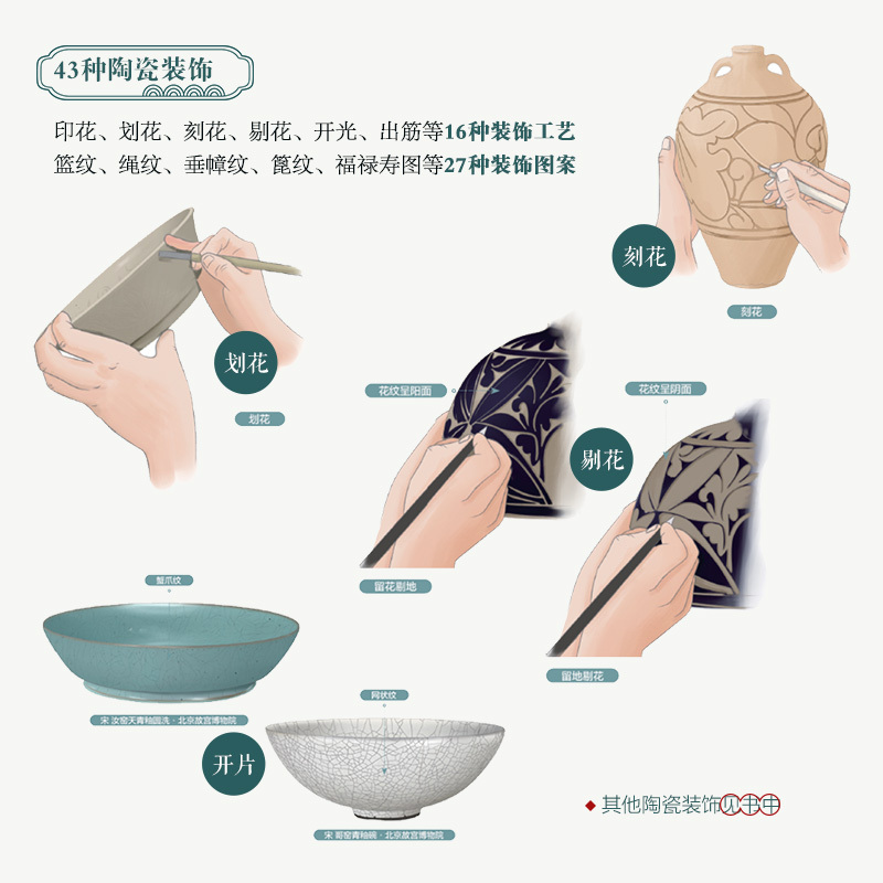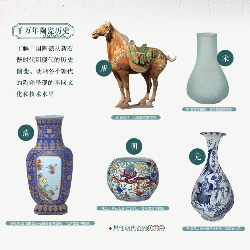 这本书的作者方静,是地地道道的景德镇人,从小就浸润在陶瓷文化里,还师从专业人士学习陶瓷绘画。这本书讲璀璨的中国陶瓷发展历史,新石器时代到近代的脉络清晰呈现;讲11种制瓷原料,像我们常听的高岭土、瓷石都有详细解读;26种制作工艺,拉坯、利坯、浸釉、仰烧等,每种工艺都讲得明明白白;79种陶瓷器型,耳杯、鸡缸杯、梅瓶、玉壶春瓶等,让你一眼认出不同瓷器;43种陶瓷装饰,印花、刻花、描金等技法一一解析;32种陶瓷釉彩,青花、粉彩、汝窑天青釉等绝美釉色尽收眼底,还有北宋汝窑天青釉葵花洗、元青花萧何月下追韩信图梅瓶等国宝瓷的深度鉴赏。最让人惊喜的是,书中有800多幅手绘插图,搭配简单易懂的文字解析,不管你是想给孩子讲陶瓷知识,还是希望培养孩子的文化底蕴,都能轻松看懂。