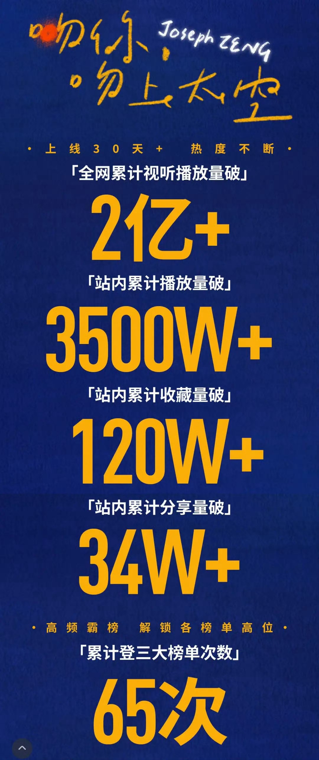 新歌《吻你吻上太空》单平台收藏突破百万!