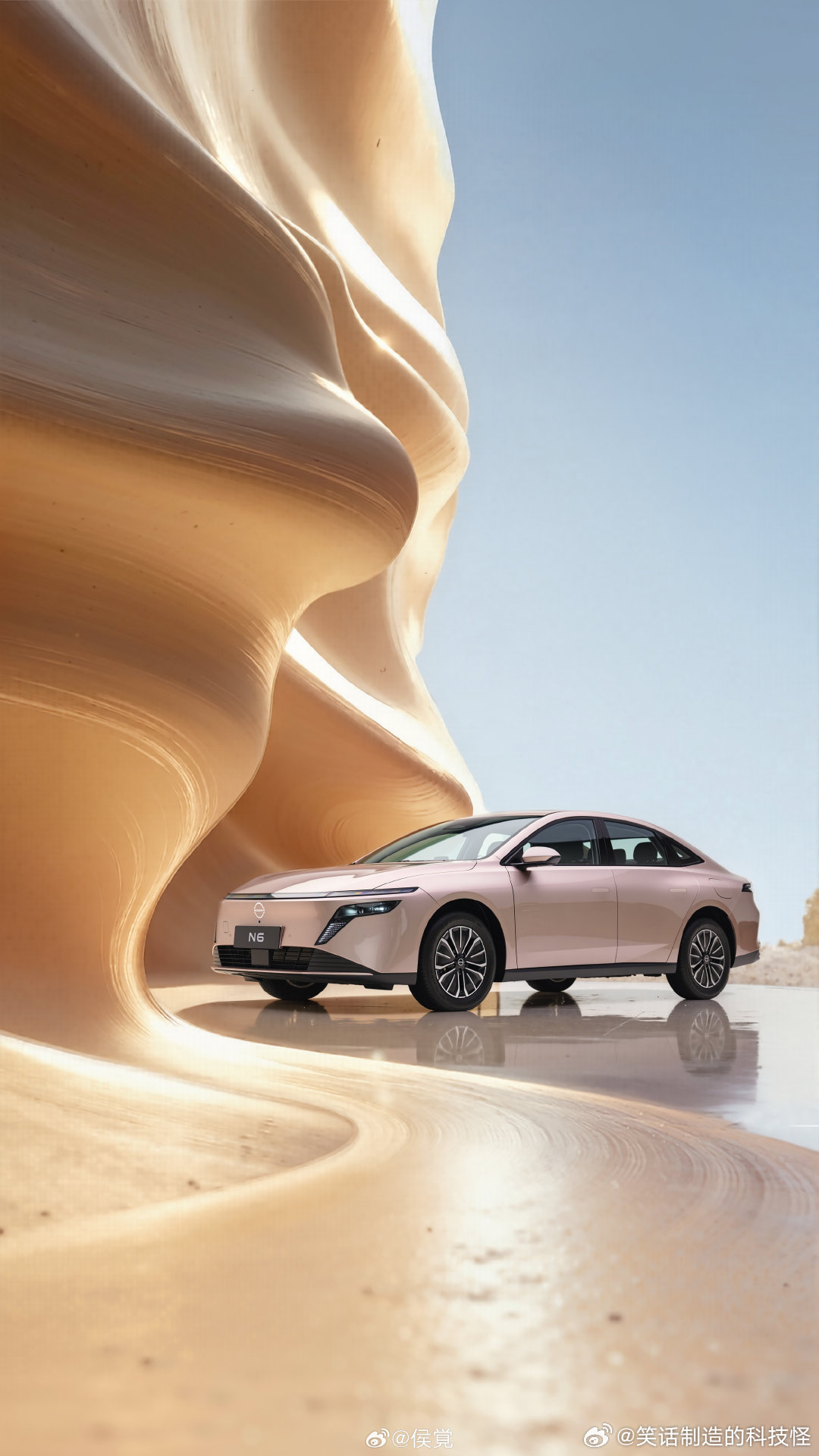 不仅视觉层次拉满,N6更将空气动力学做到极致。风阻系数低至0.248Cd。黄金比例0.618,没有一丝多余的棱角,却充满力量感。配色也有好几种,我尤其喜欢日照金和珠玉白。日照金像清晨第一缕阳光洒在沙漠,温暖又耀眼;珠玉白如雪后初霁,纯净通透,干净得让人心动。究竟哪种颜色会成为我的门面担当?就等上市去4S店再揭晓答案了。N6神颜一见倾心东风日产N6插混版N7(