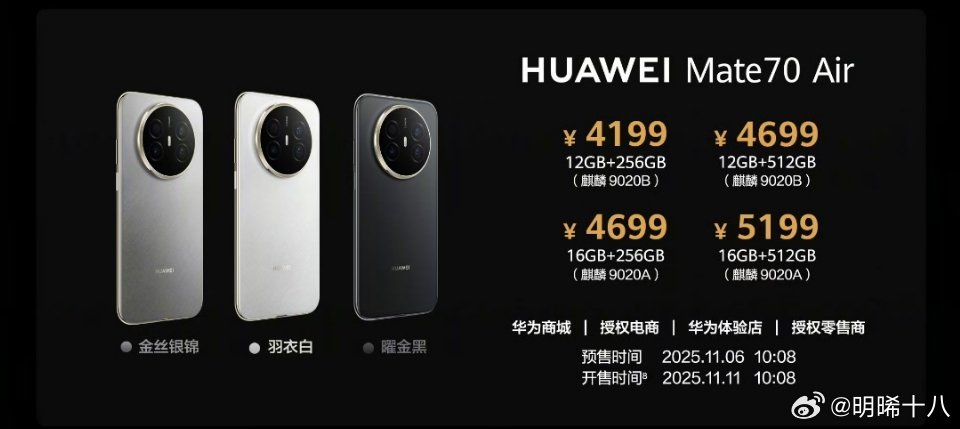 华为Mate70 Air有两张处理器配置,麒麟9020A和麒麟9020B,分别是什么处理器?