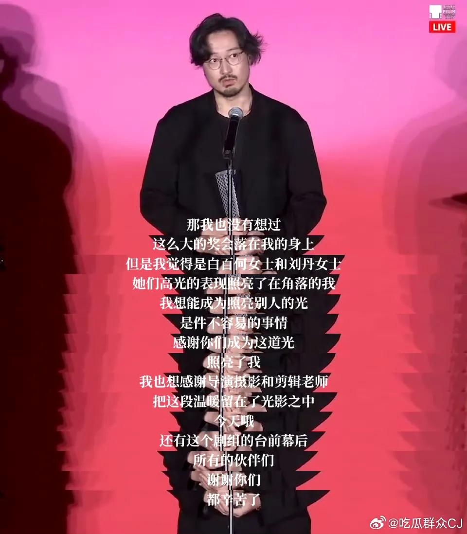 笑死,王传君获奖感言:感谢白百何女士和刘丹女士,是她们的光亮照亮了角落里的我。