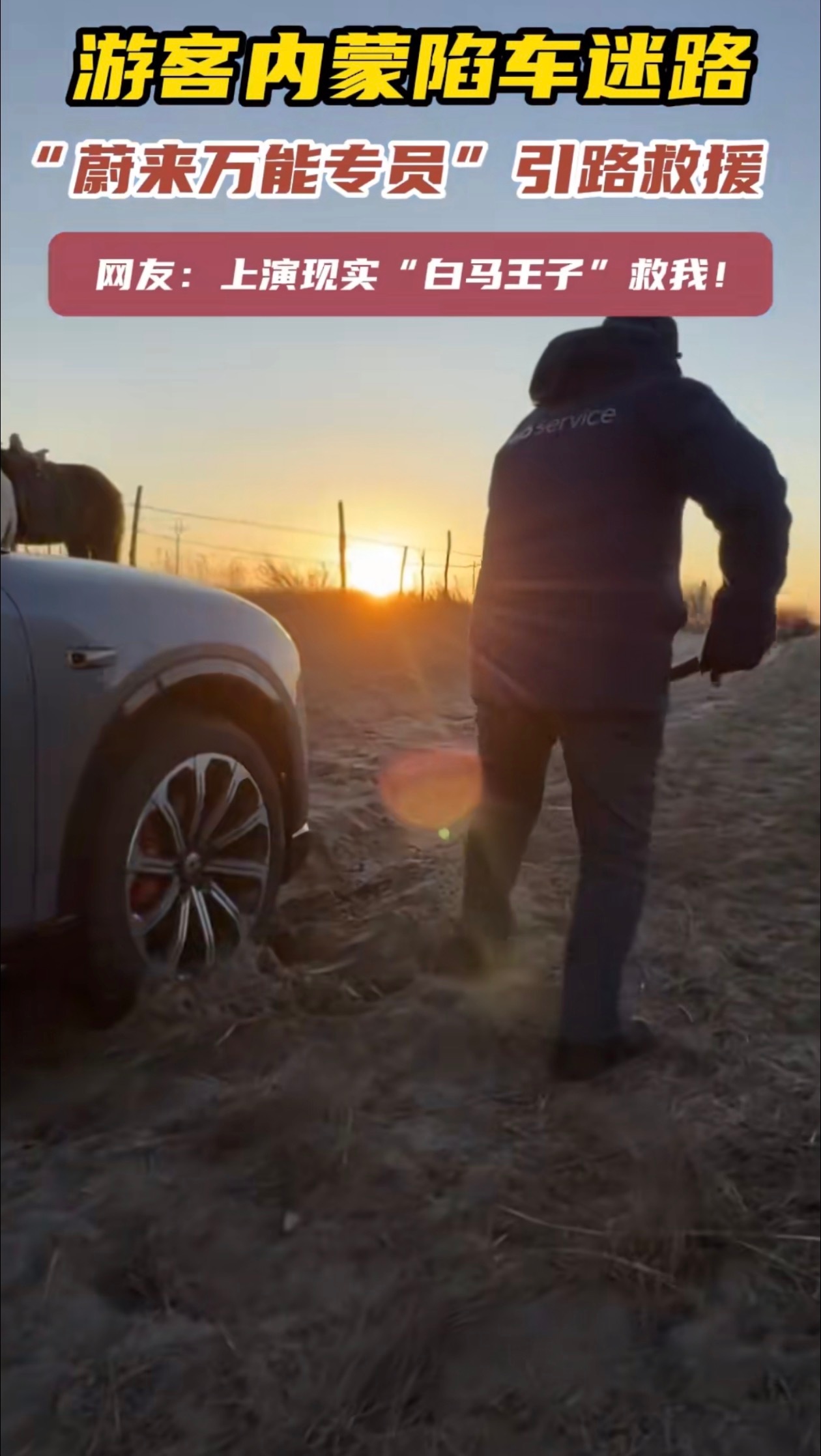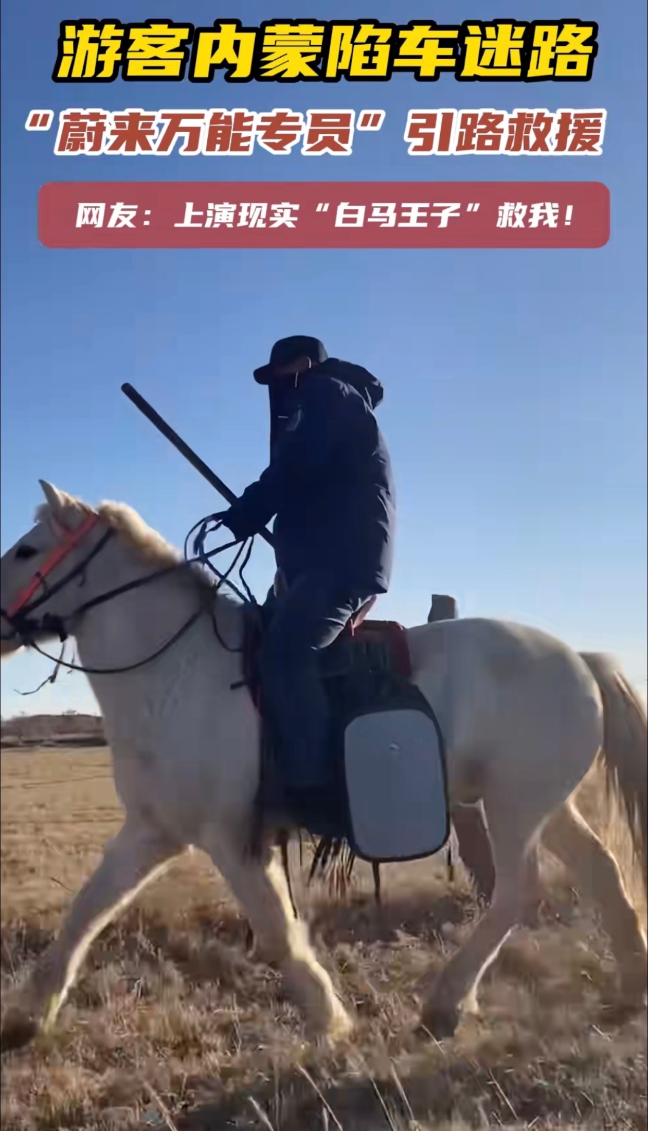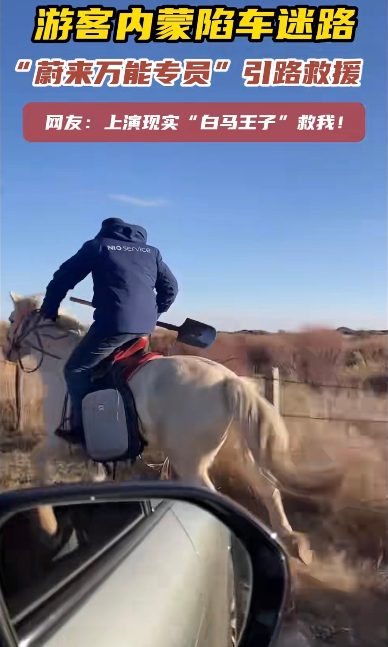 啊?有蔚来车友在内蒙自驾陷车了,蔚来小哥直接骑了白马来救援。