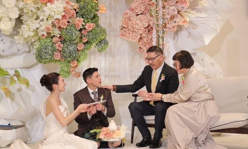 #泰国娱乐# Mild、Pai举行大婚典礼,Nong、Kai作为女方家长出席了婚礼。。PS,新郎Pai是泰国、苏格兰混血,与Mild爱情长跑了8年。