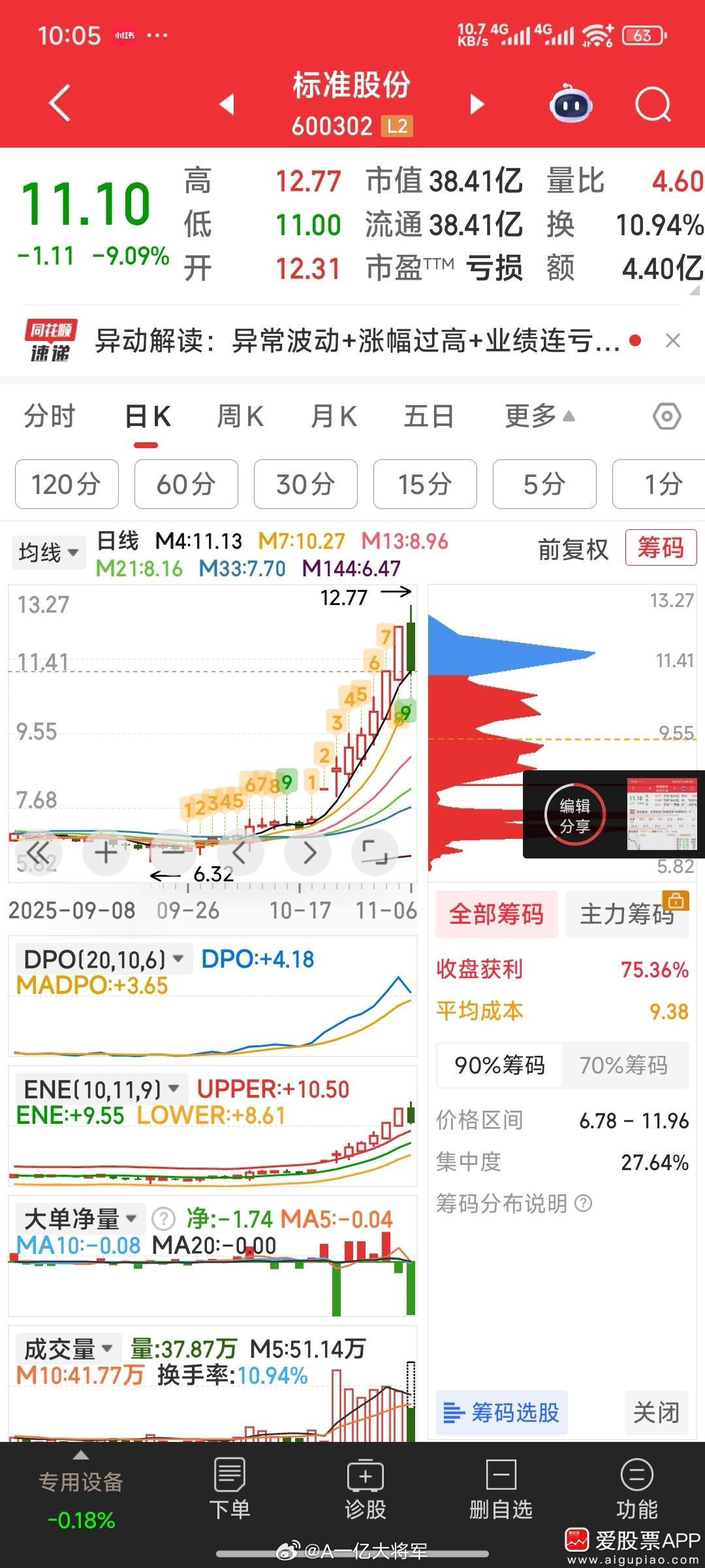 保变电气和恒大高新估计难上车,故撤单,资金11.11元按计划加仓了标准股份。
