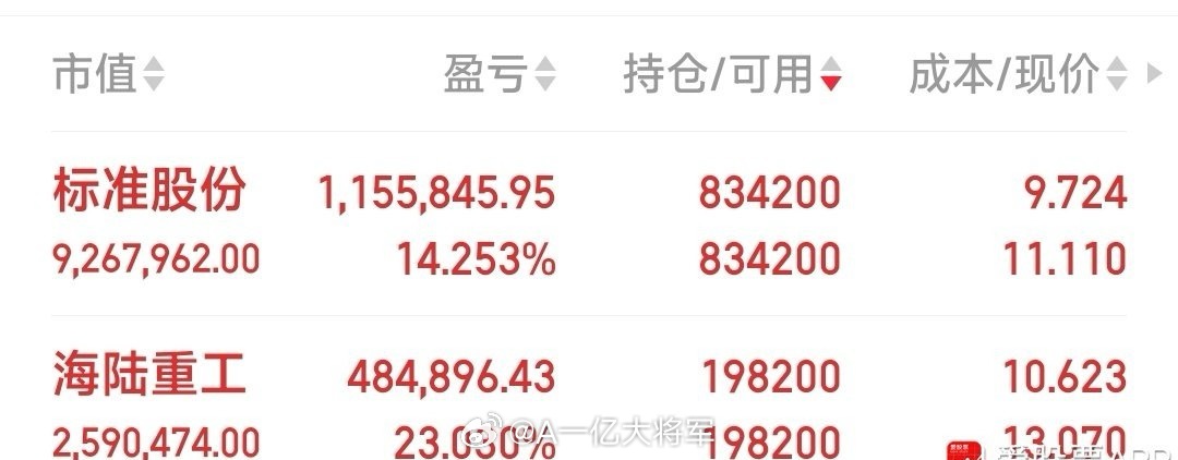 现手中仅二牛:标准股份,海陆重工。